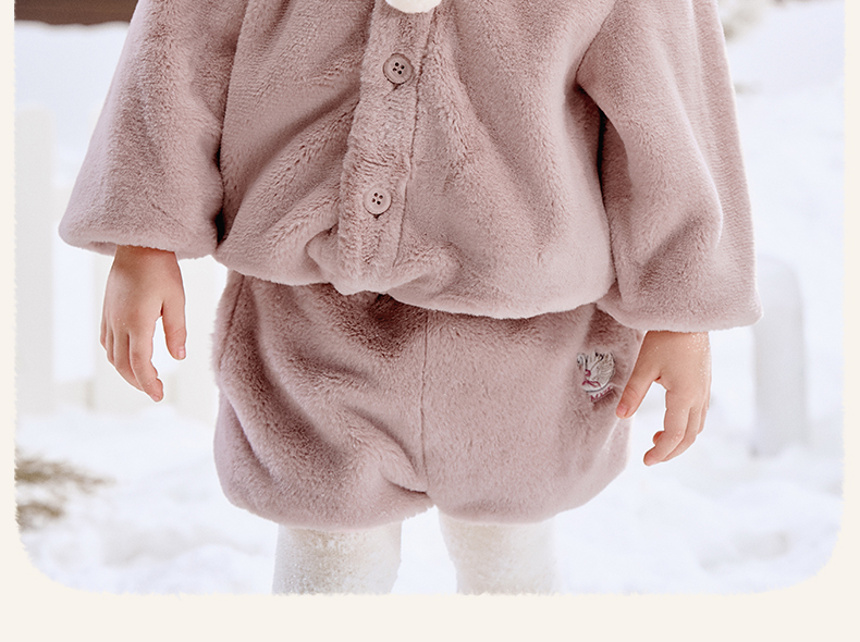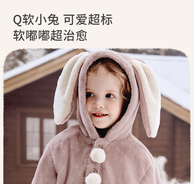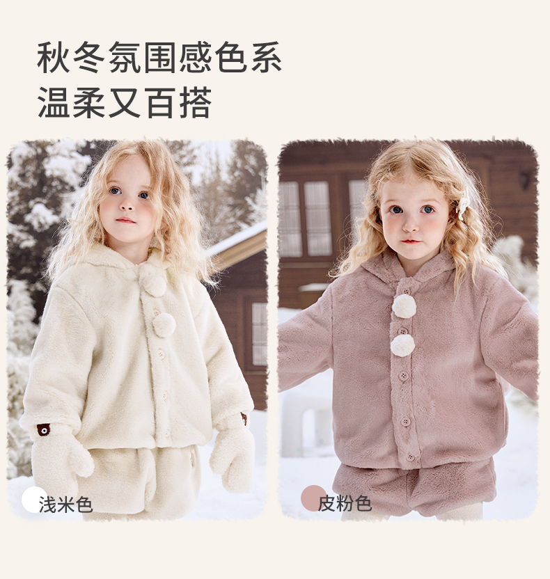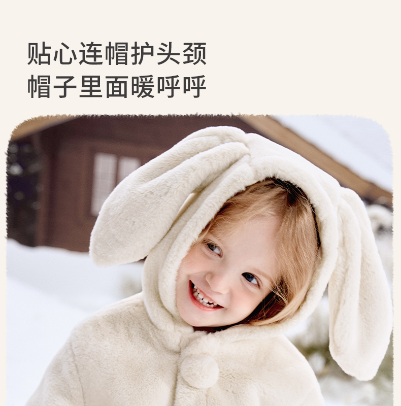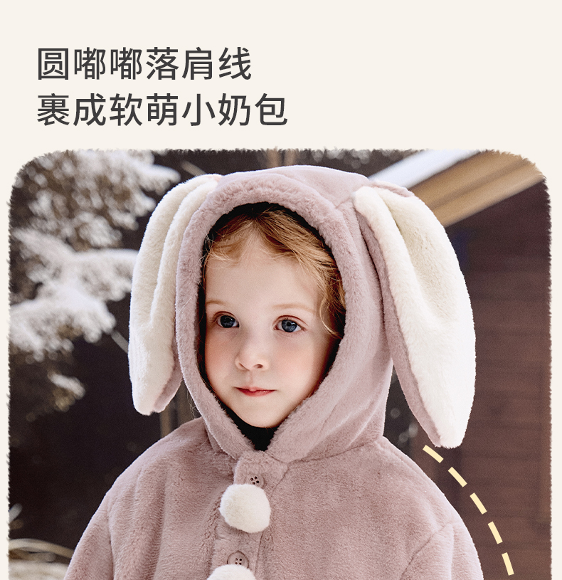 【宝宝服饰】嫚熙童装儿童冬季保暖外套女童连帽2025新款女宝百搭可爱毛绒上衣