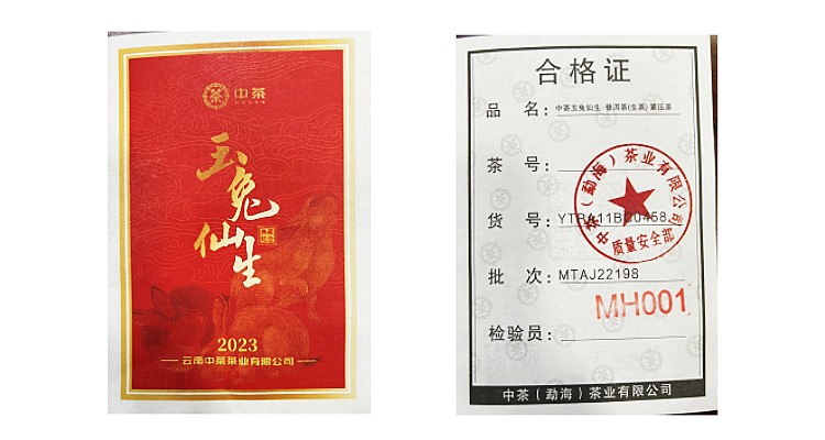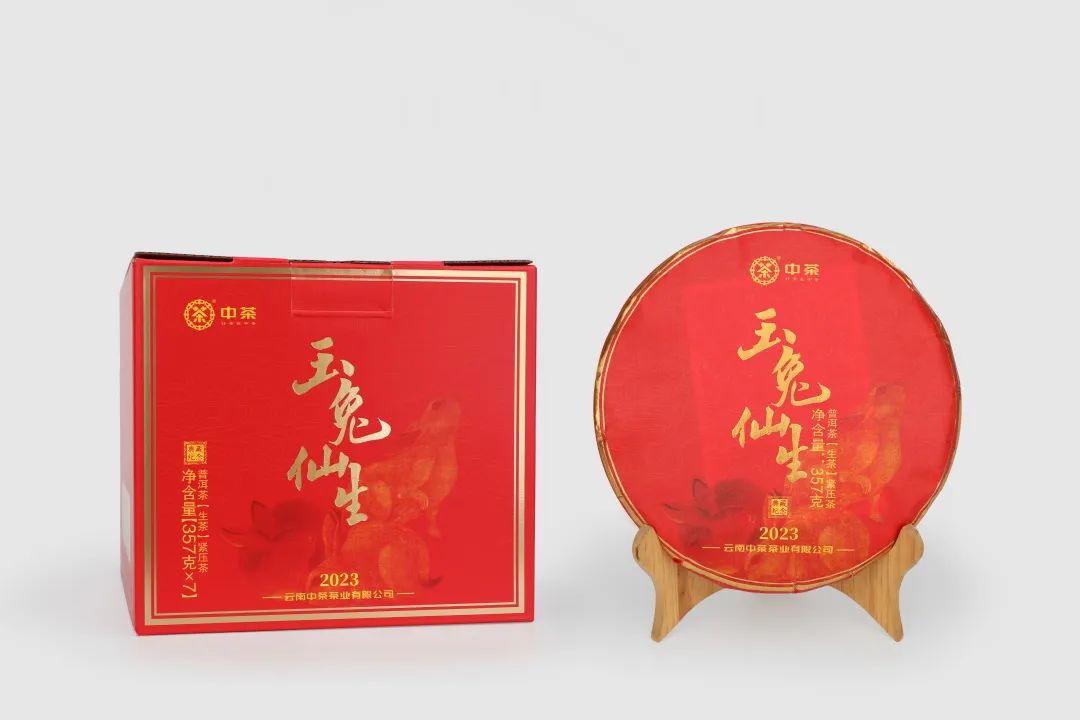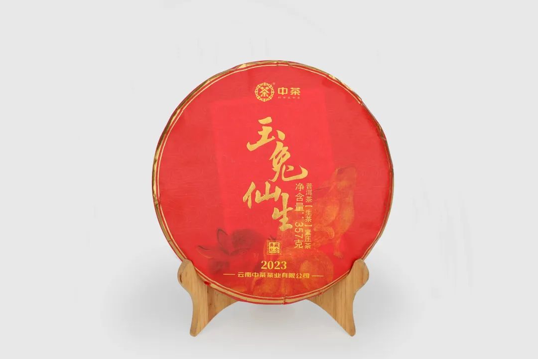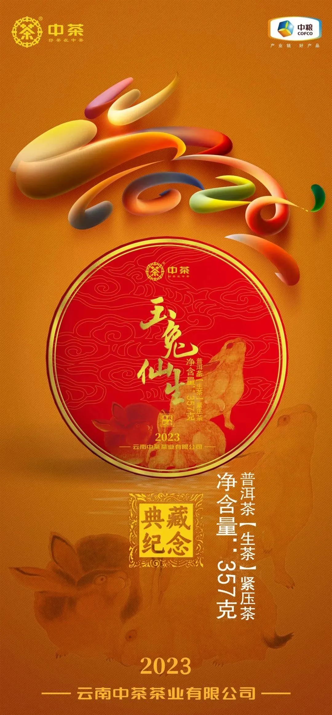 中粮-中茶2023年玉兔仙生癸卯生肖纪念茶饼云南普洱茶生茶357g /干仓直发