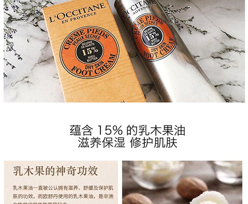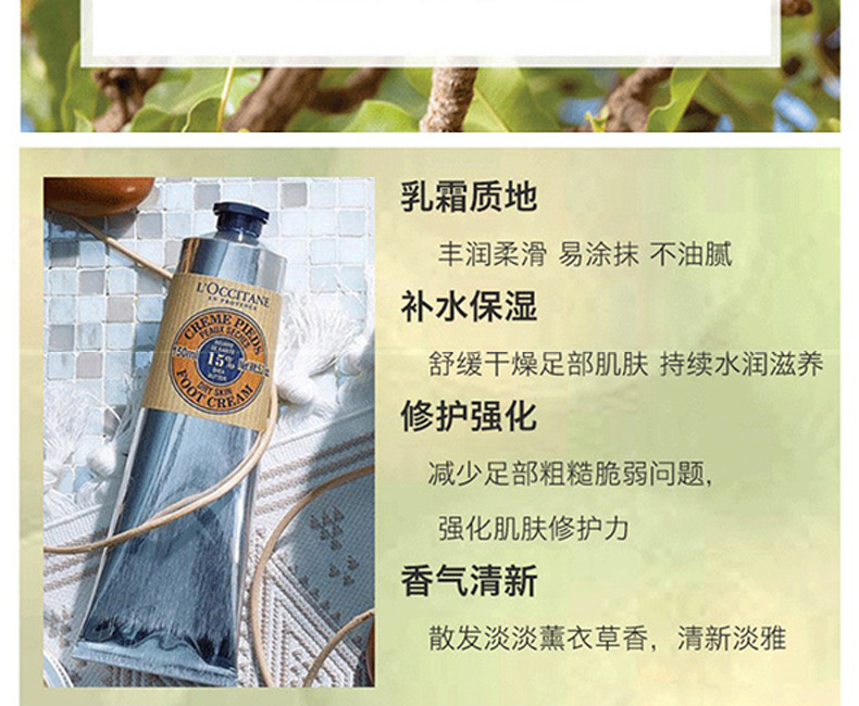 经天然植物修护力 深度滋养双足 换季肌肤敏感,双足布满干纹 长期高跟鞋压迫,双足脆弱易裂 你需要乳木果丰凝润足霜 柔软滋养肌肤,同时舒缓干燥。