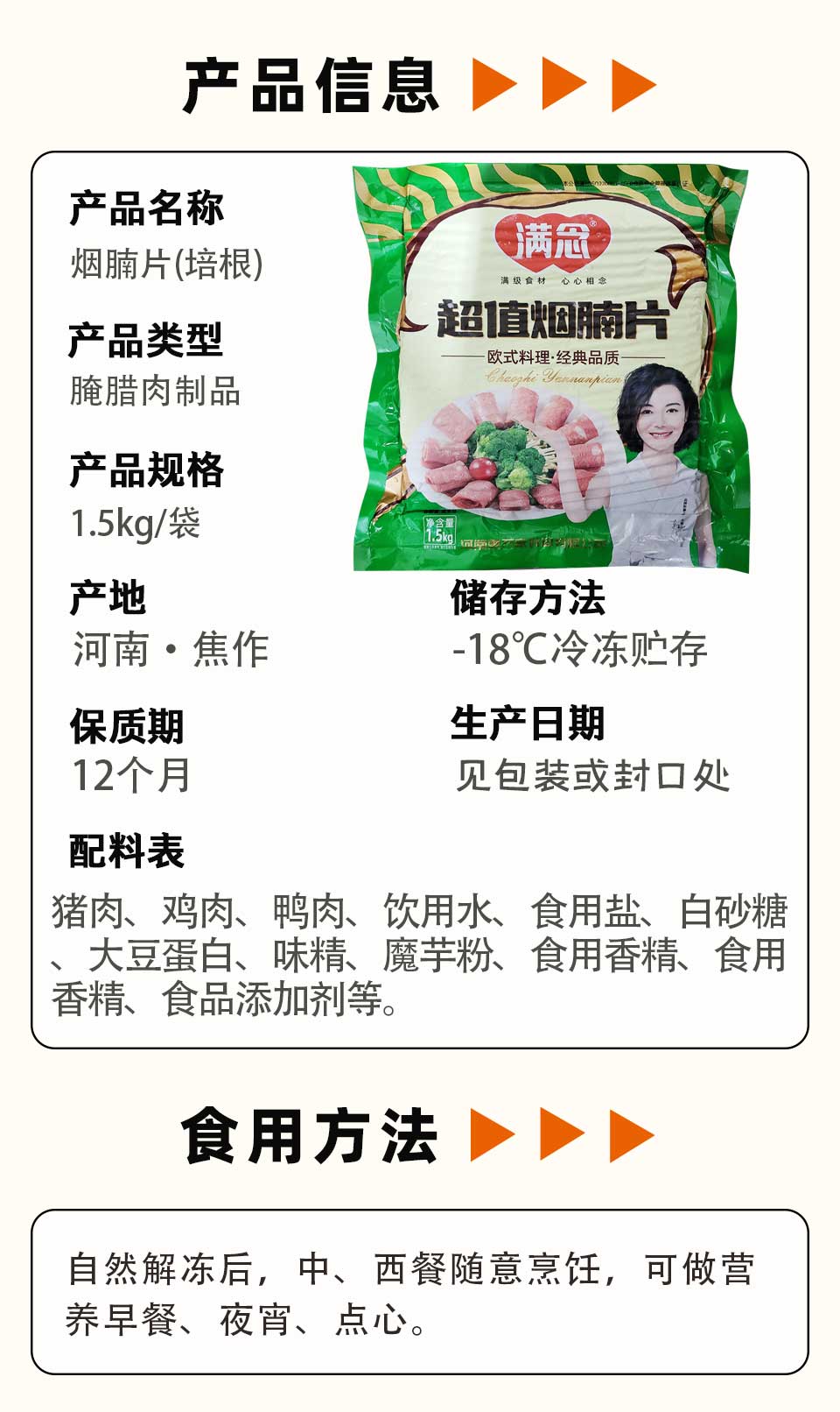 25A满念超值烟腩片(培根) 1.5kg/袋(约50片)8袋/件