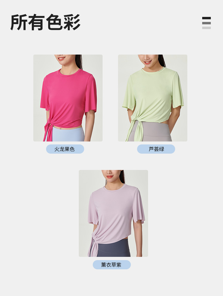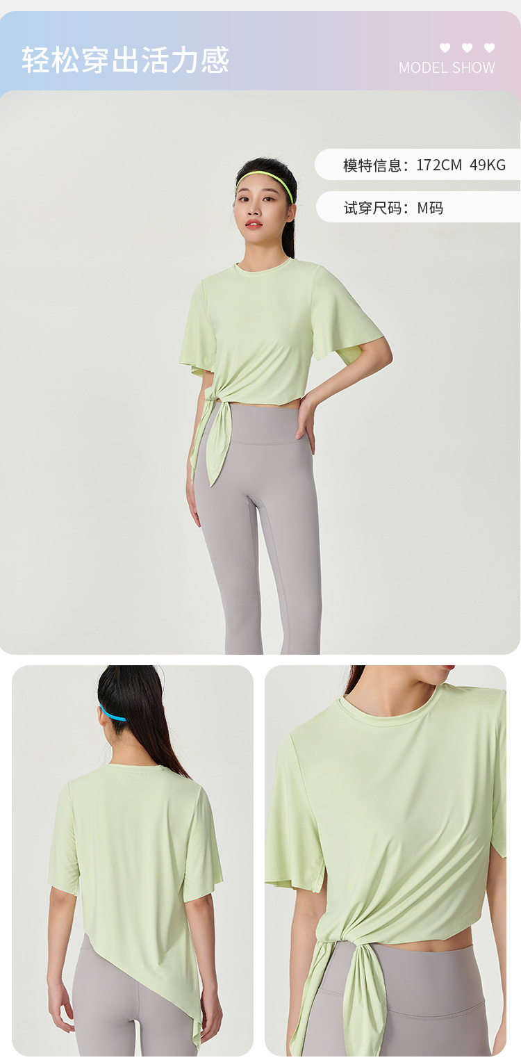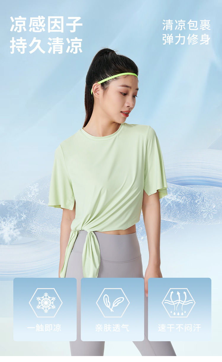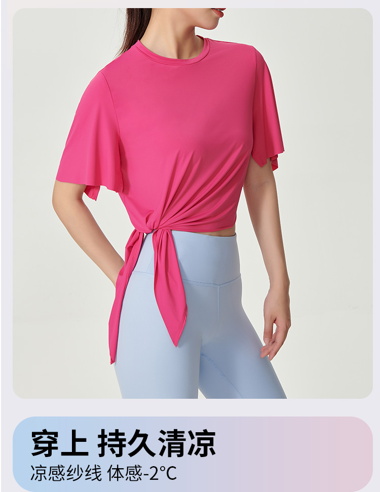 I'd爱帝轻运动凉感T恤侧摆打结瑜伽小蛮腰短袖上衣