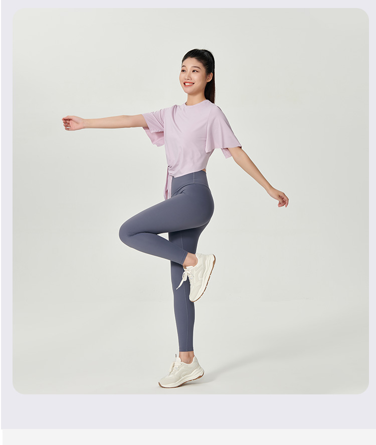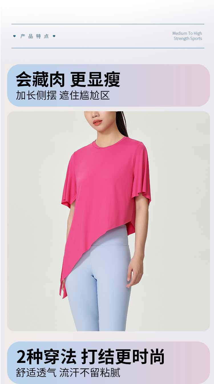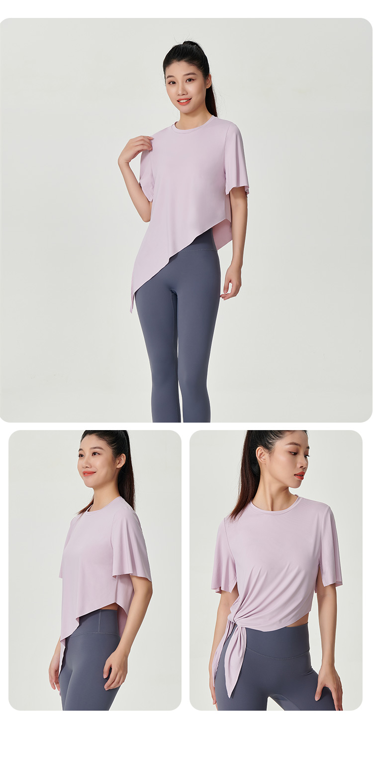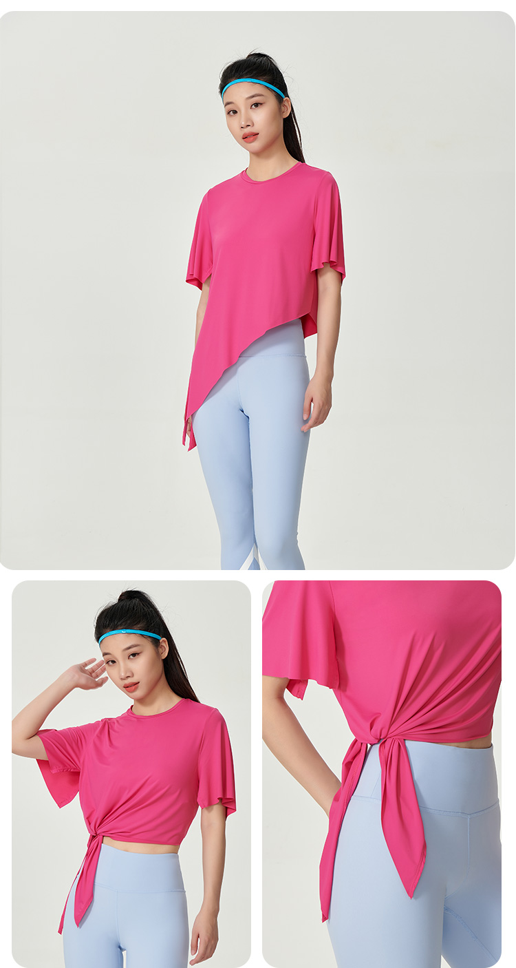 I'd爱帝轻运动凉感T恤侧摆打结瑜伽小蛮腰短袖上衣
