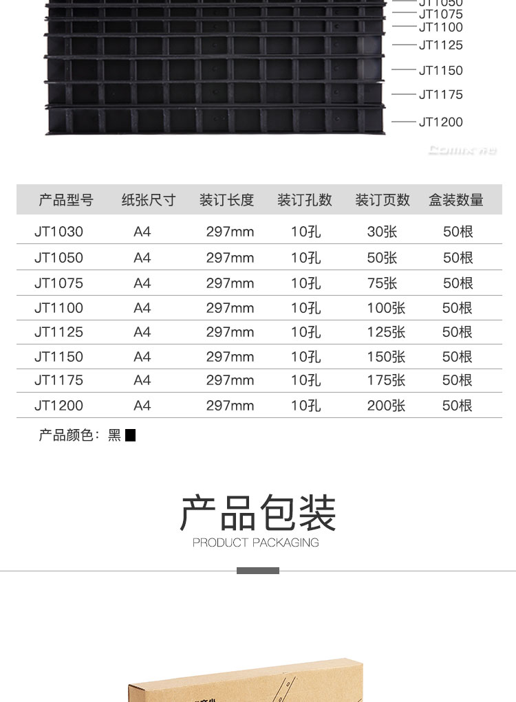 齐心 JT1200 装订夹条 20mm宽 1SET=50PCS