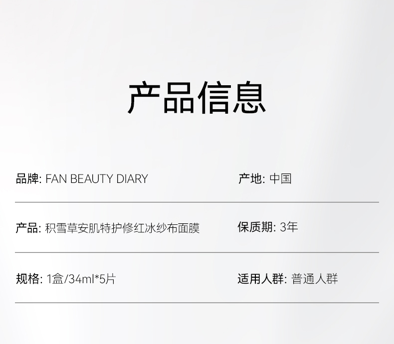 【新品】积雪草安肌特护修红冰纱布面膜34ml*5片/盒