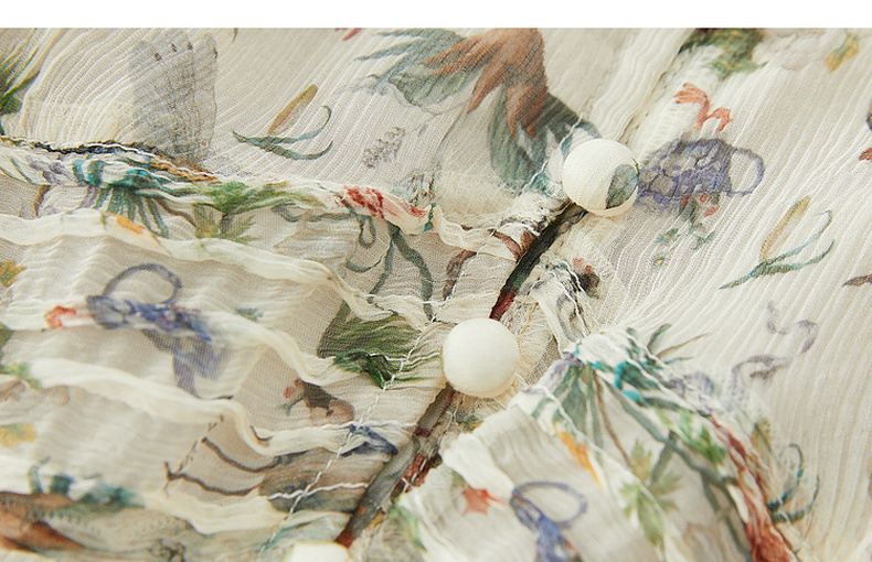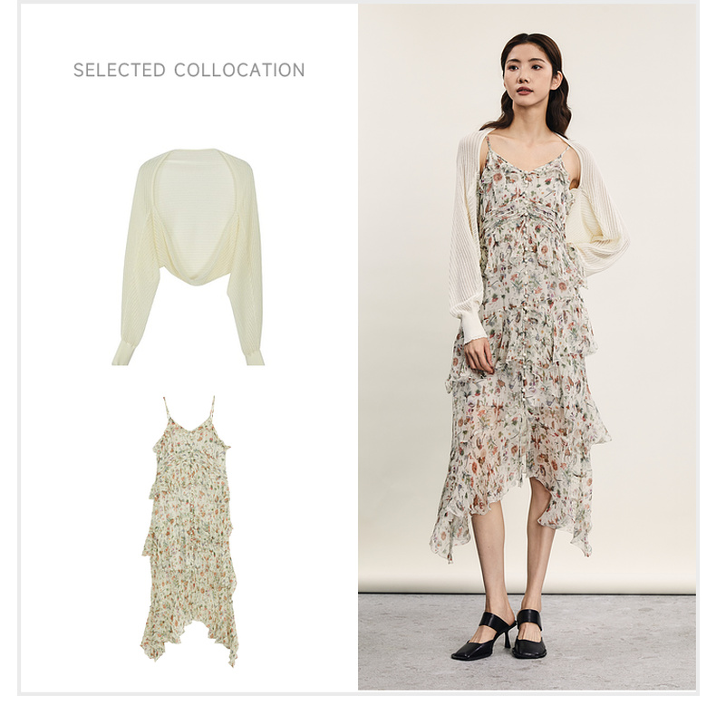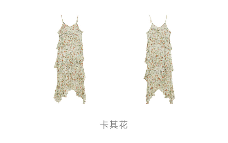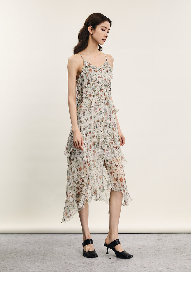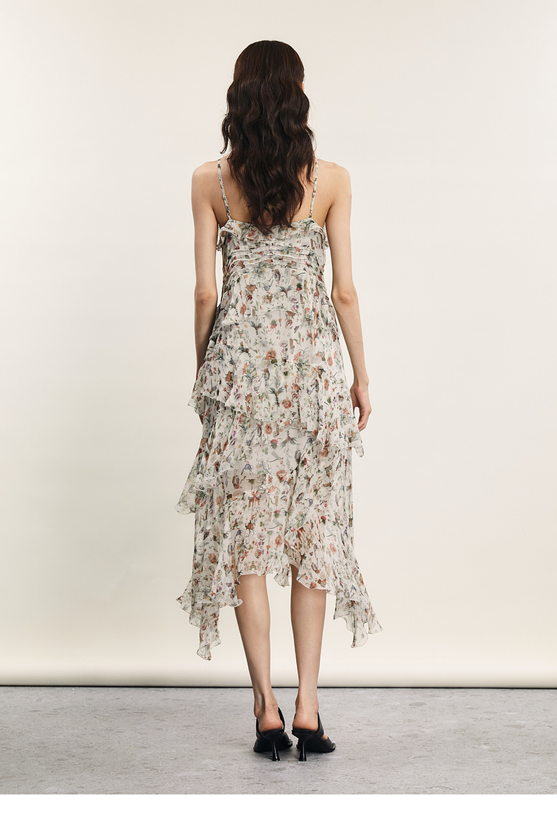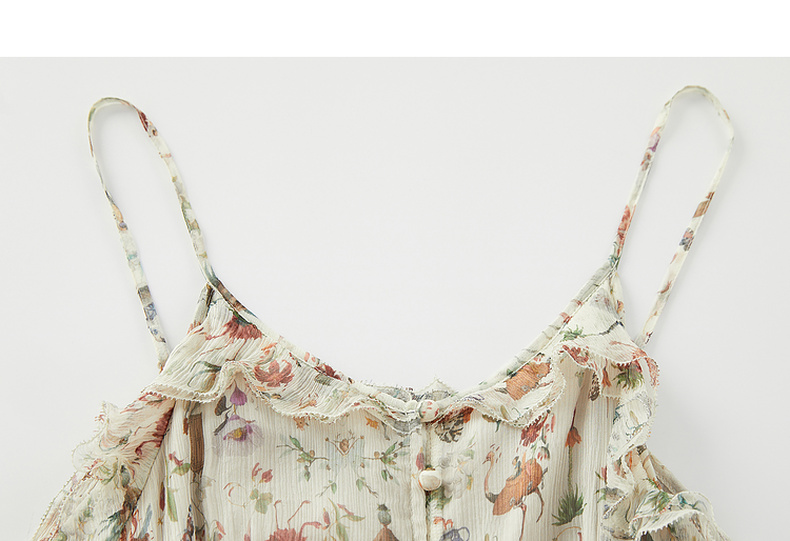 谜底吊带连衣裙2024夏季新品复古法式桑蚕丝碎花中长裙242GL0609