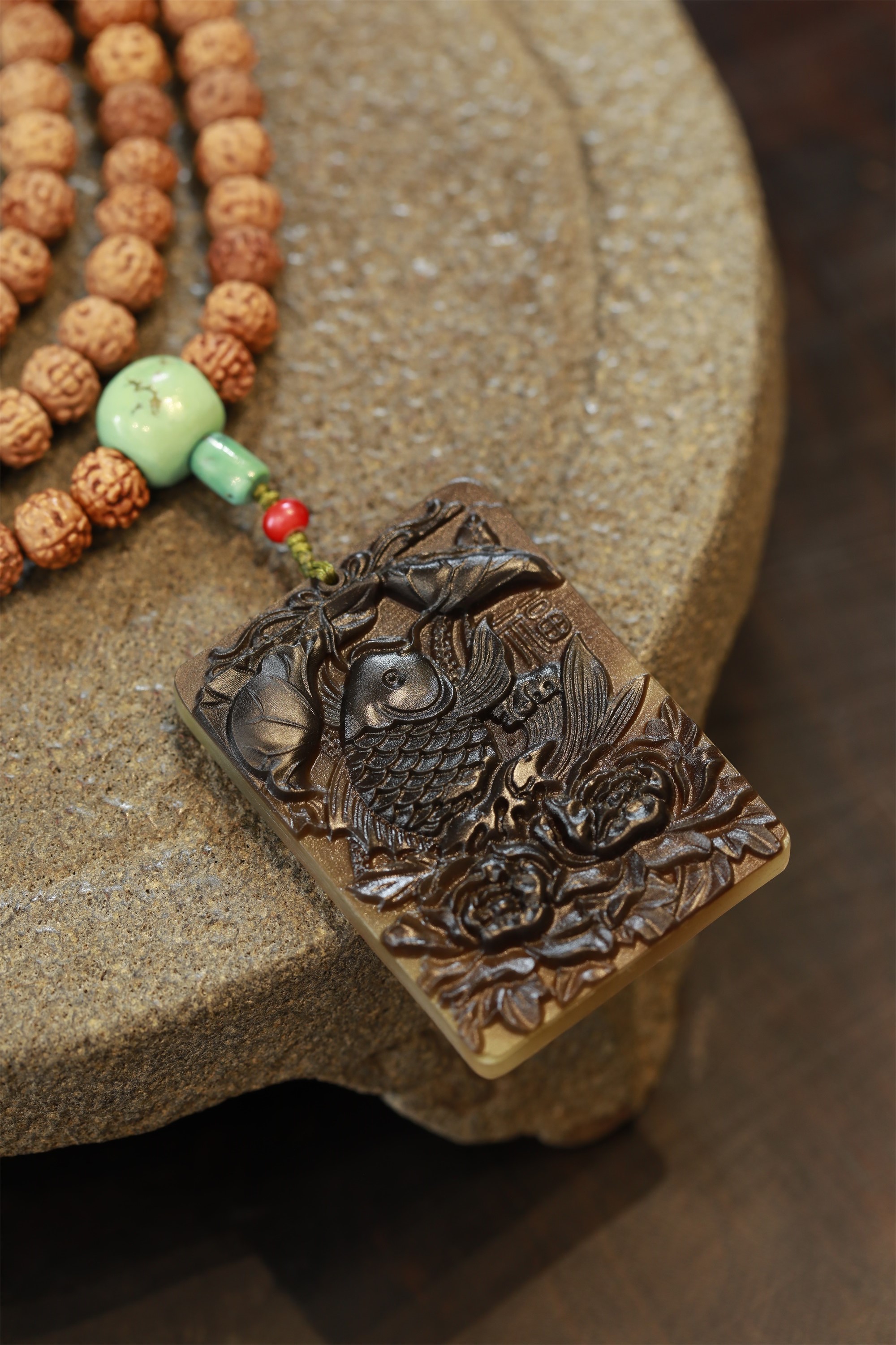H2301Y08°肉纹羊角牌精编菩提手串
