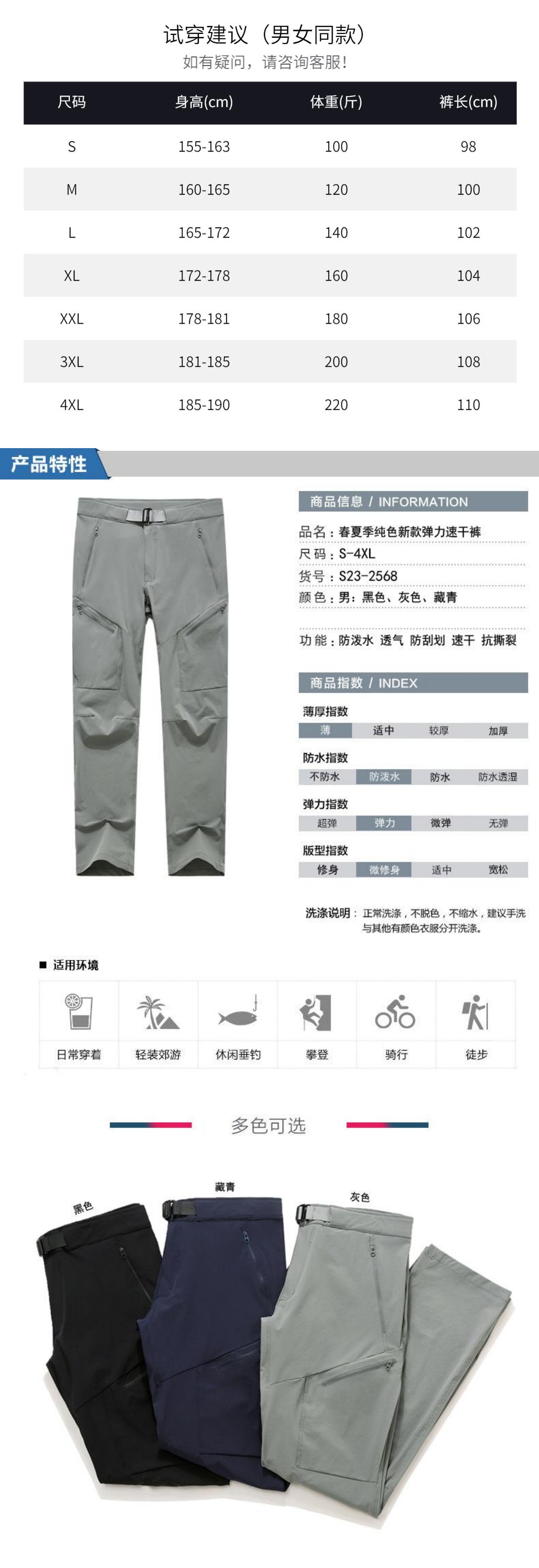 户外速干裤男女大码防水冲锋裤春夏薄徒步长裤弹力透气登山裤