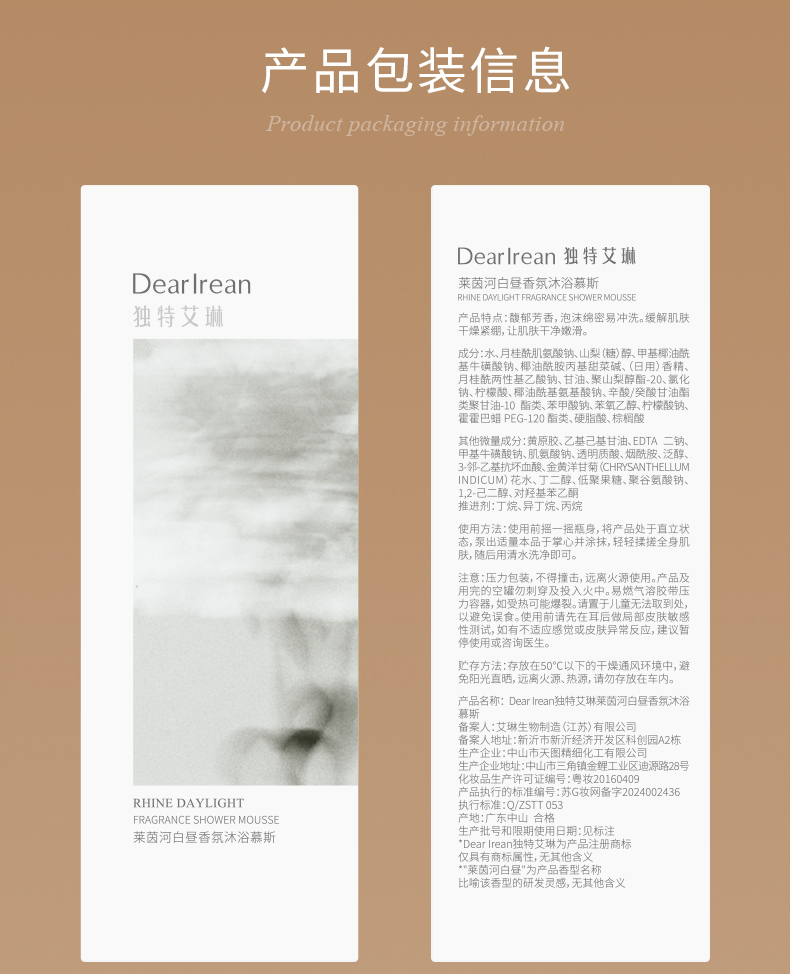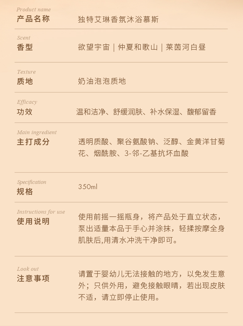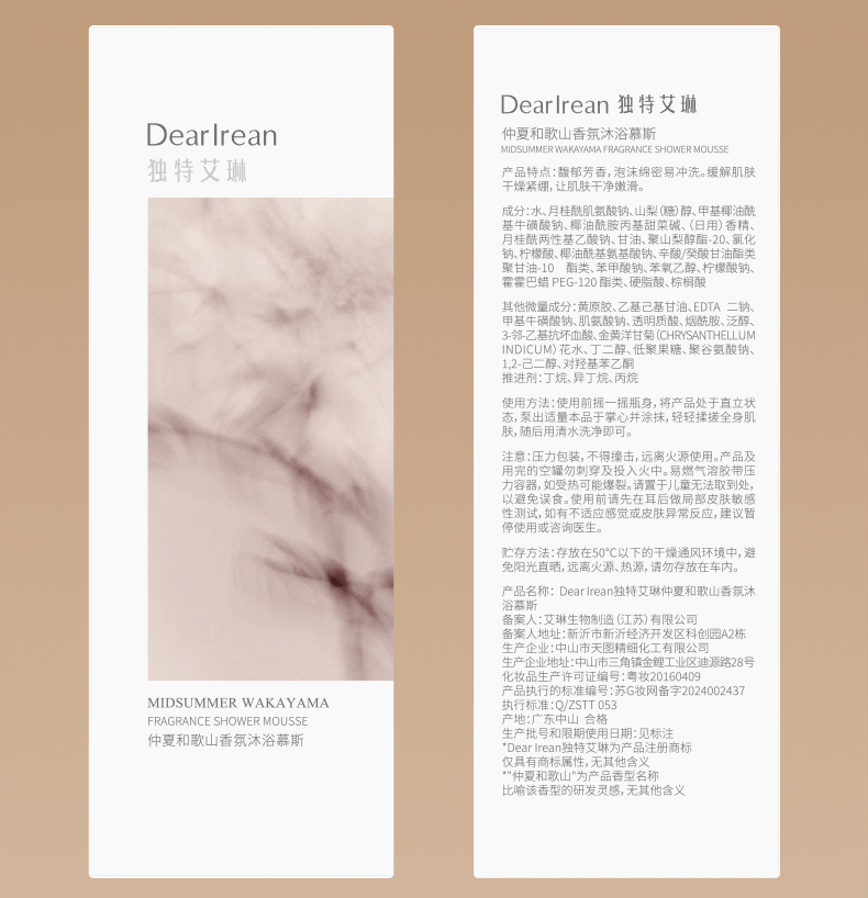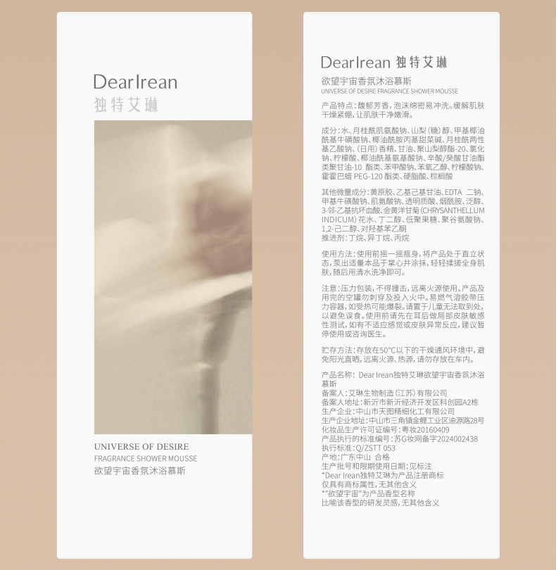 【现货速发】DearIrean 独特艾琳保湿舒缓香氛沐浴慕斯350ml