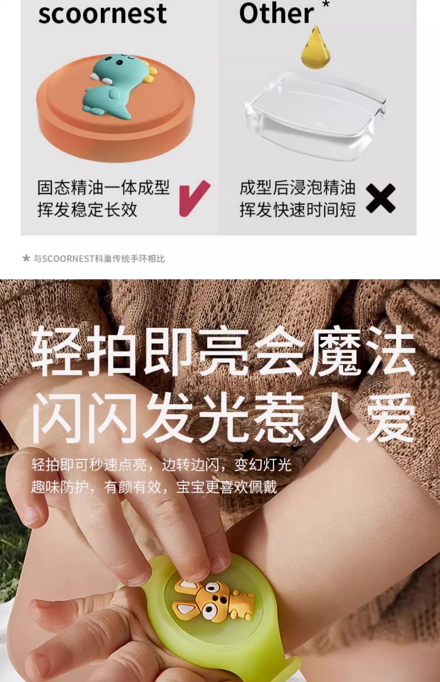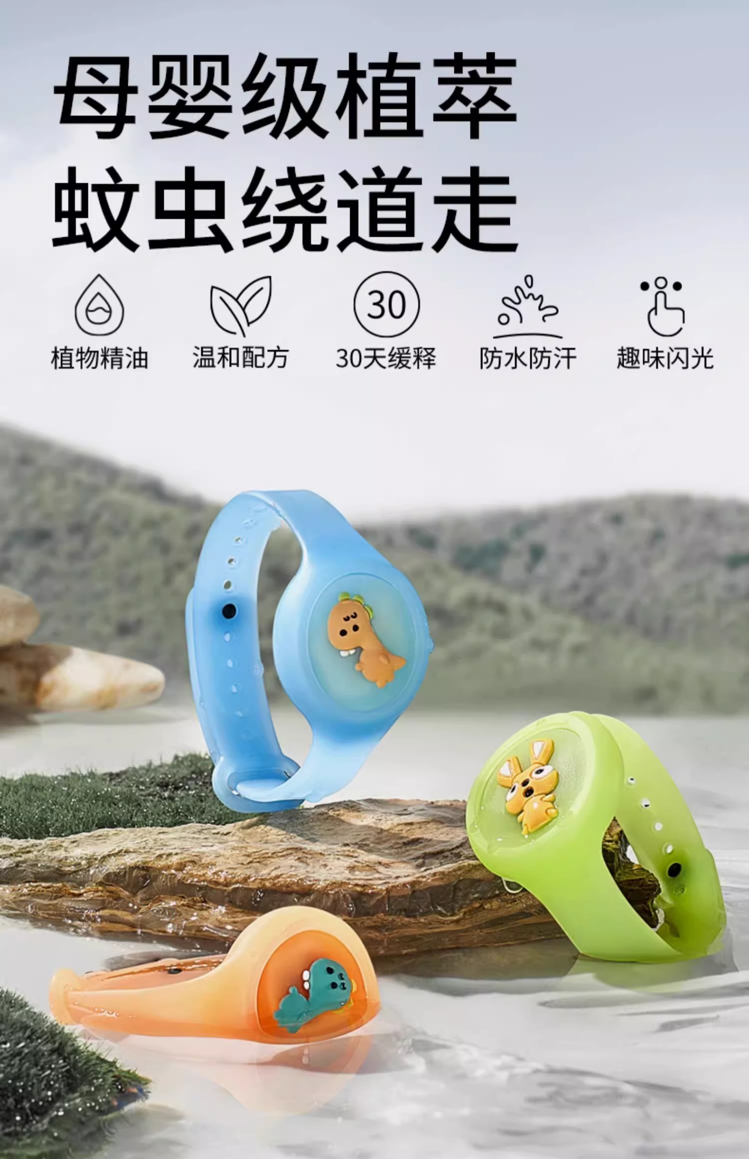 科巢驱蚊液闪光手环婴儿宝宝儿童专用户外随身携带防蚊子液手表扣