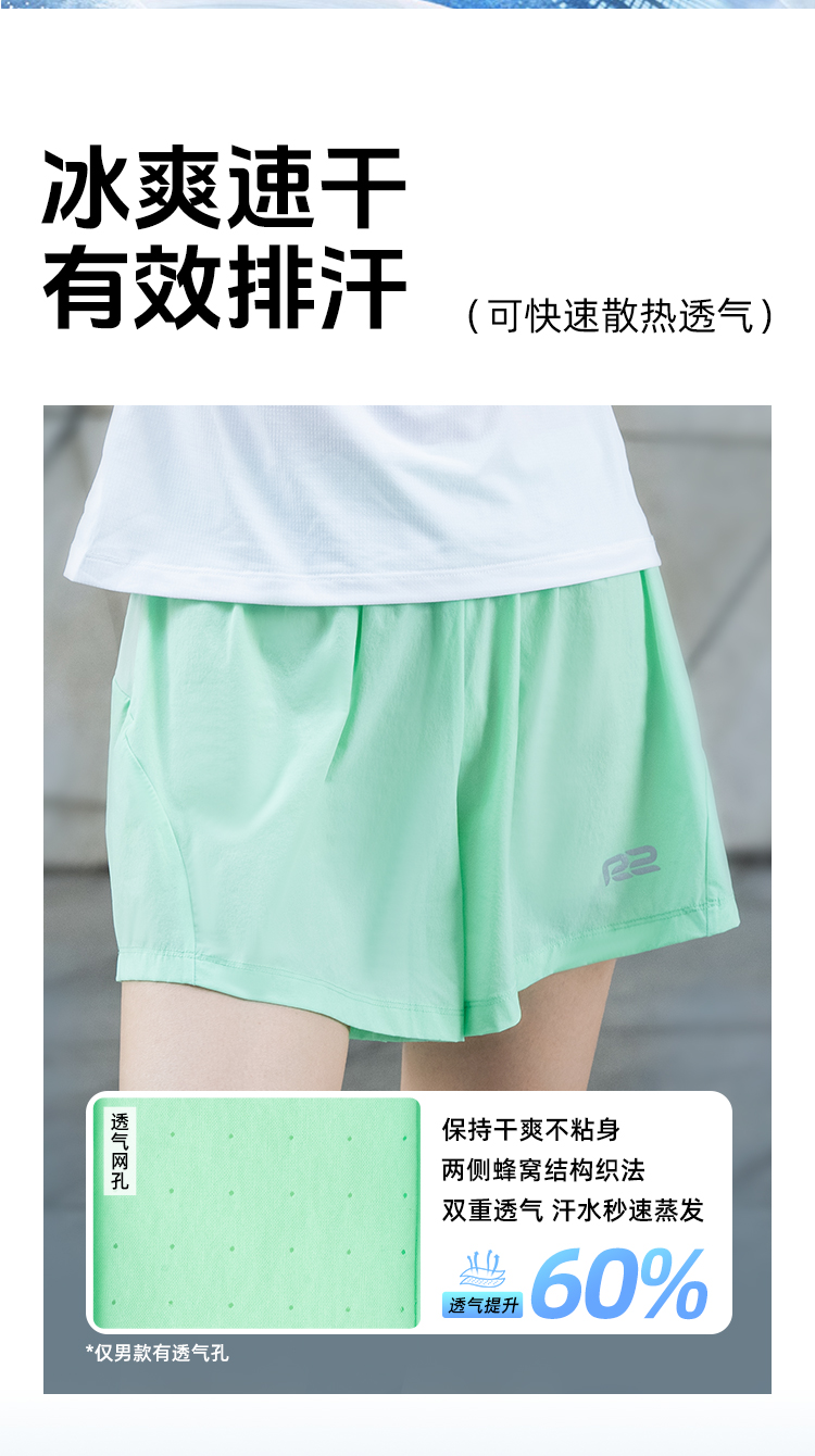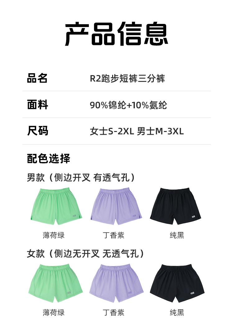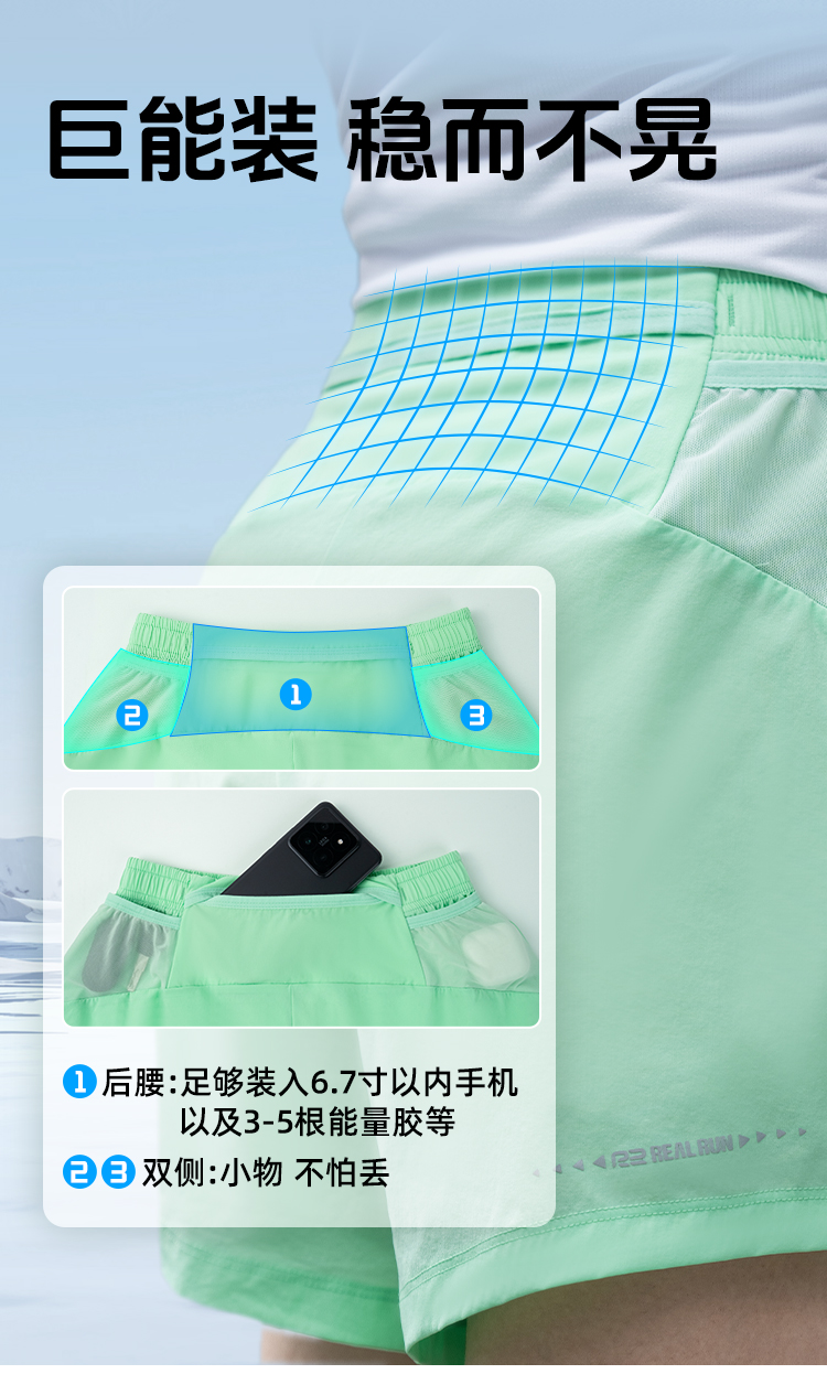 R2运动短裤马拉松专用训练男女三分裤透气速干跑步健身可放手机