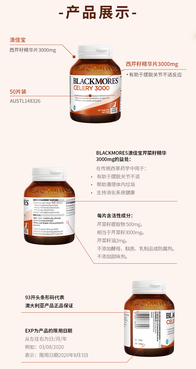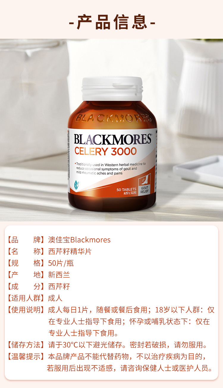 Blackmores 澳佳宝芹菜籽精华片50粒【安琪全球购.保税仓直发】