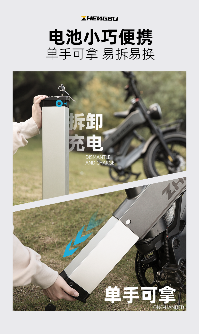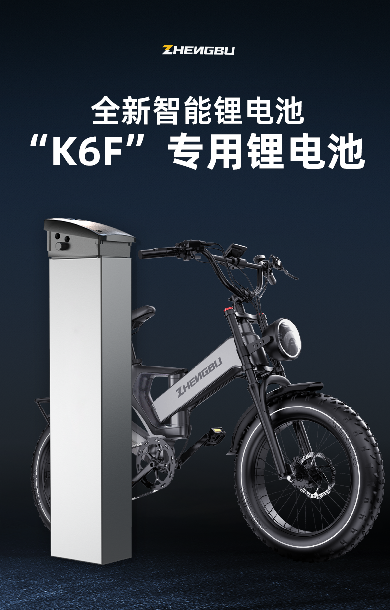 zb/正步 锂电池K6F专用山地车电池 大容量可拆卸锂电池便携新能源