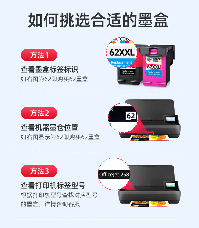 绘威 62XXL黑彩套装大容量墨盒 适用惠普HP OfficeJet 200墨盒 208 258彩色打印机墨盒