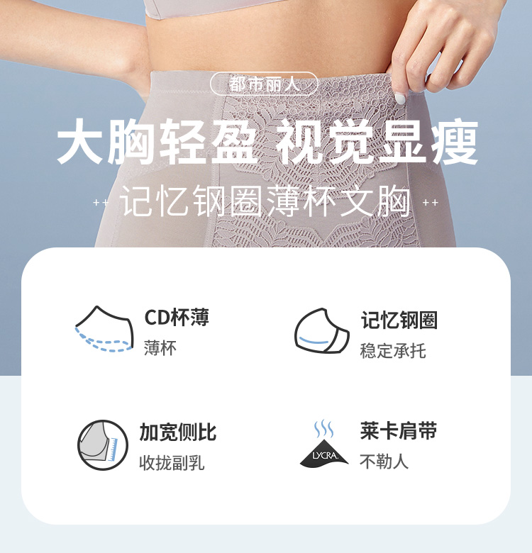 都市丽人美体纤塑中塑CD杯调整型文胸蕾丝薄3/4杯塑身衣塑身文胸四排扣无钢圈LJ22M7
