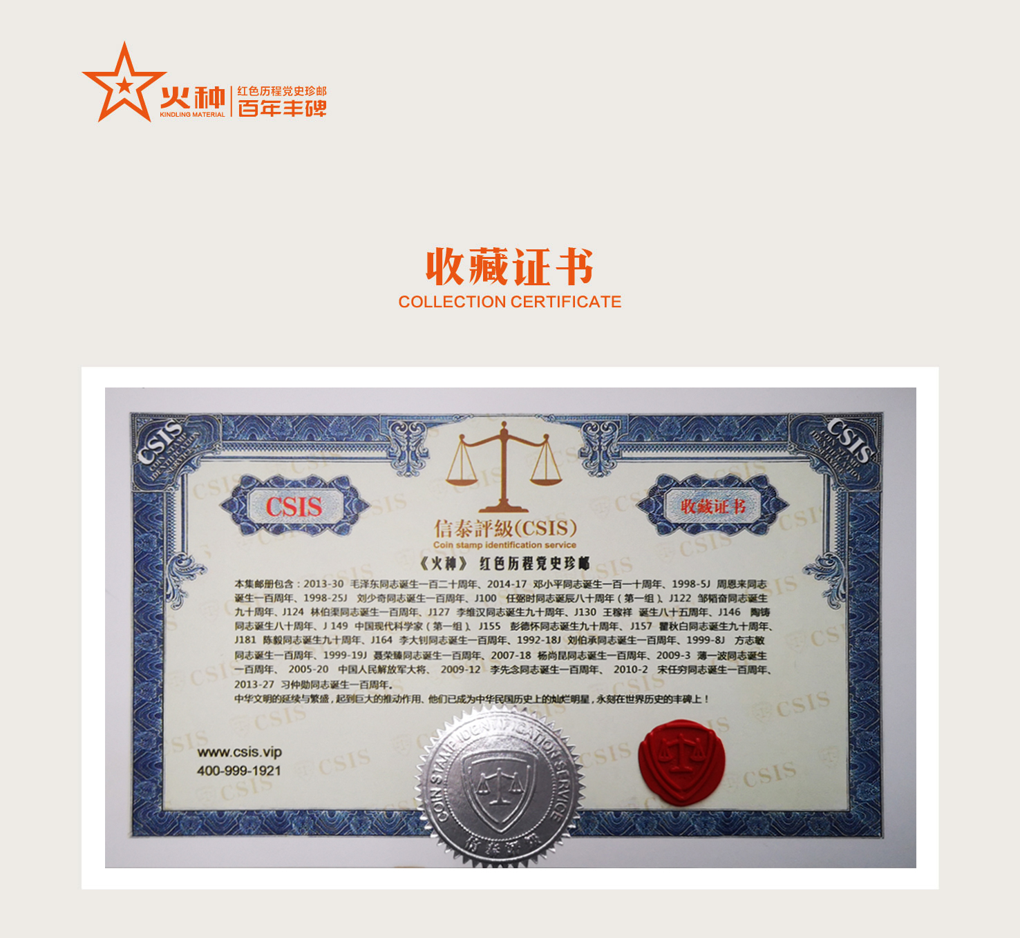 百年丰碑红色历程火种(带证书卡册) 带红色精美包装礼盒