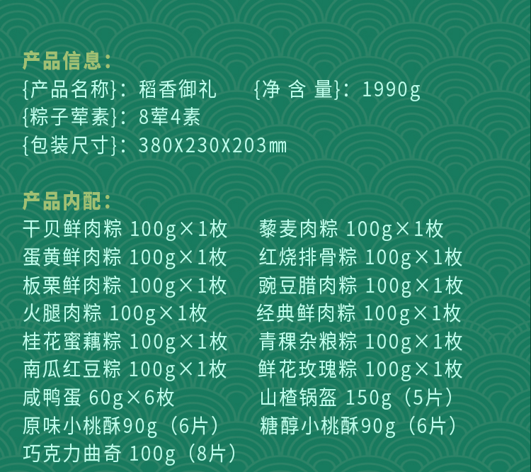 稻香村 稻香御礼礼盒(12粽6蛋+点心)- 1990g【端午】SKT