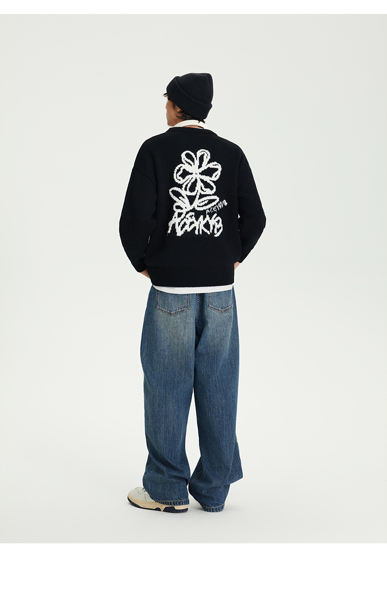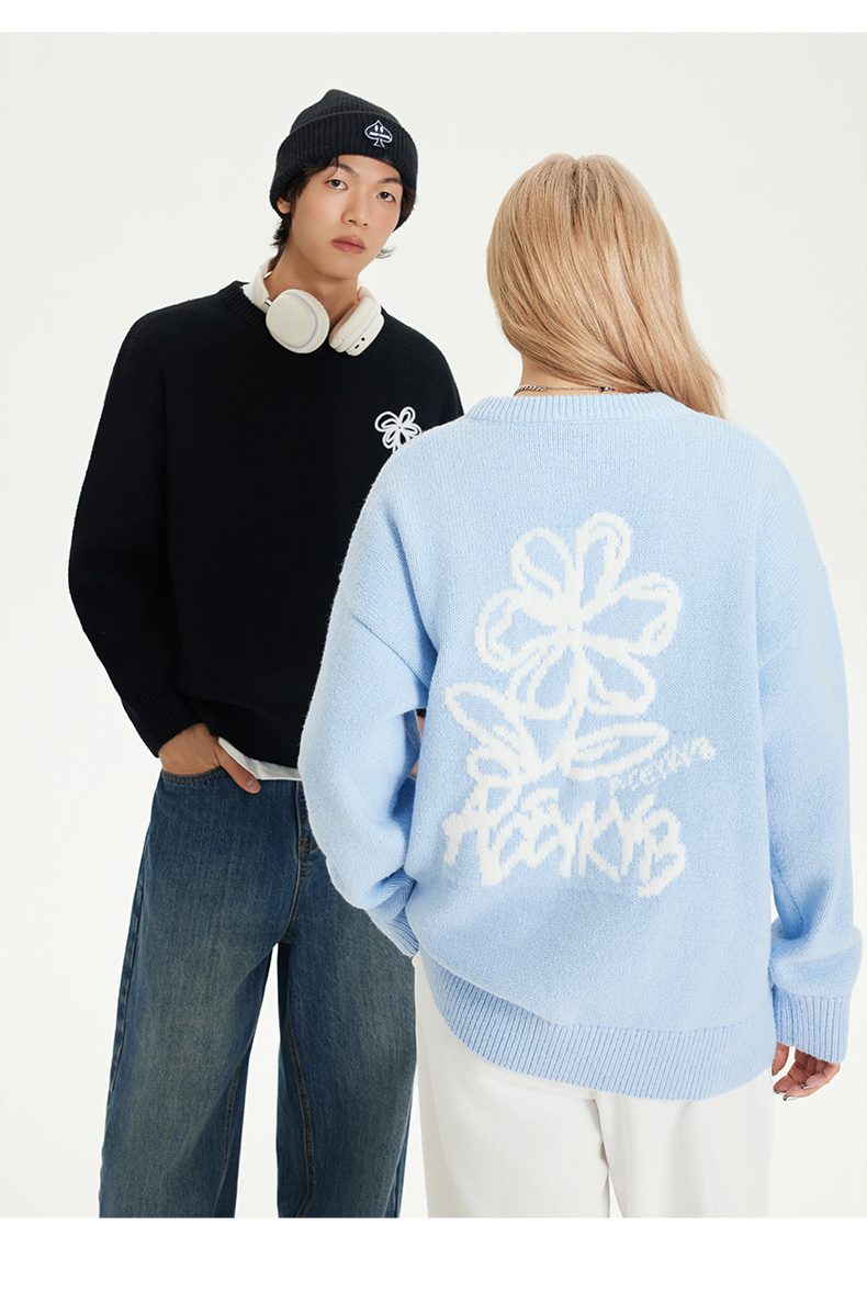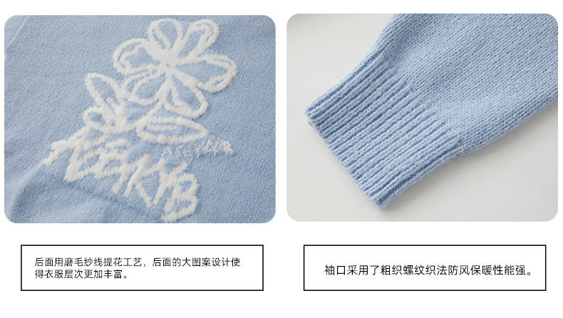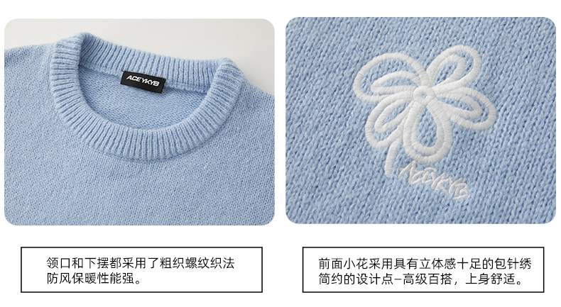 YKYB保暖肤舒适百搭厚实小花毛衣针织衫Y44NMS021
