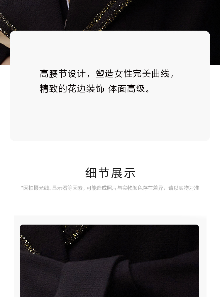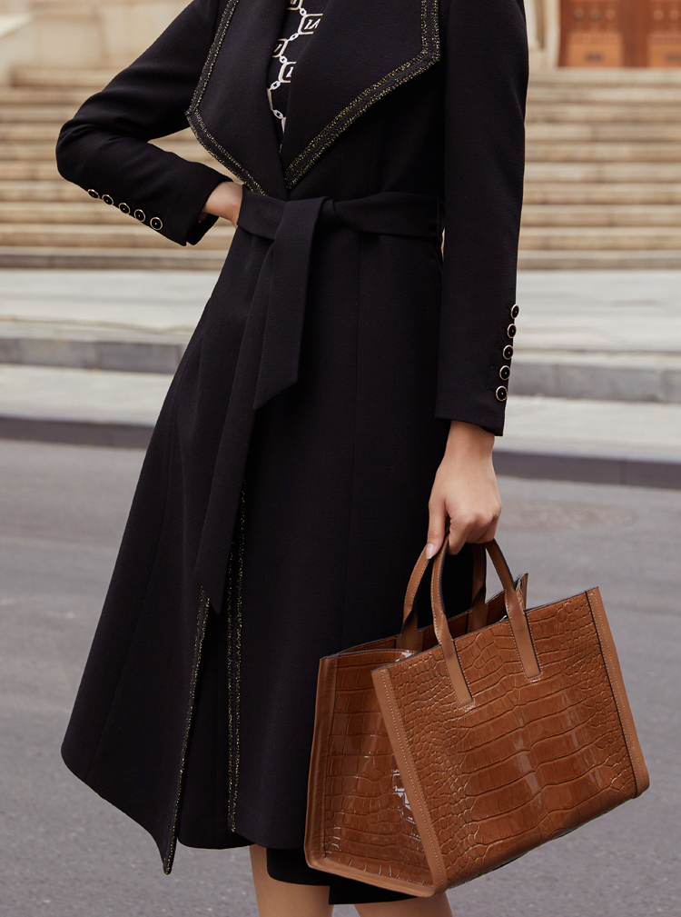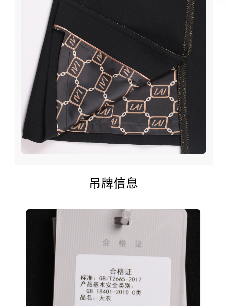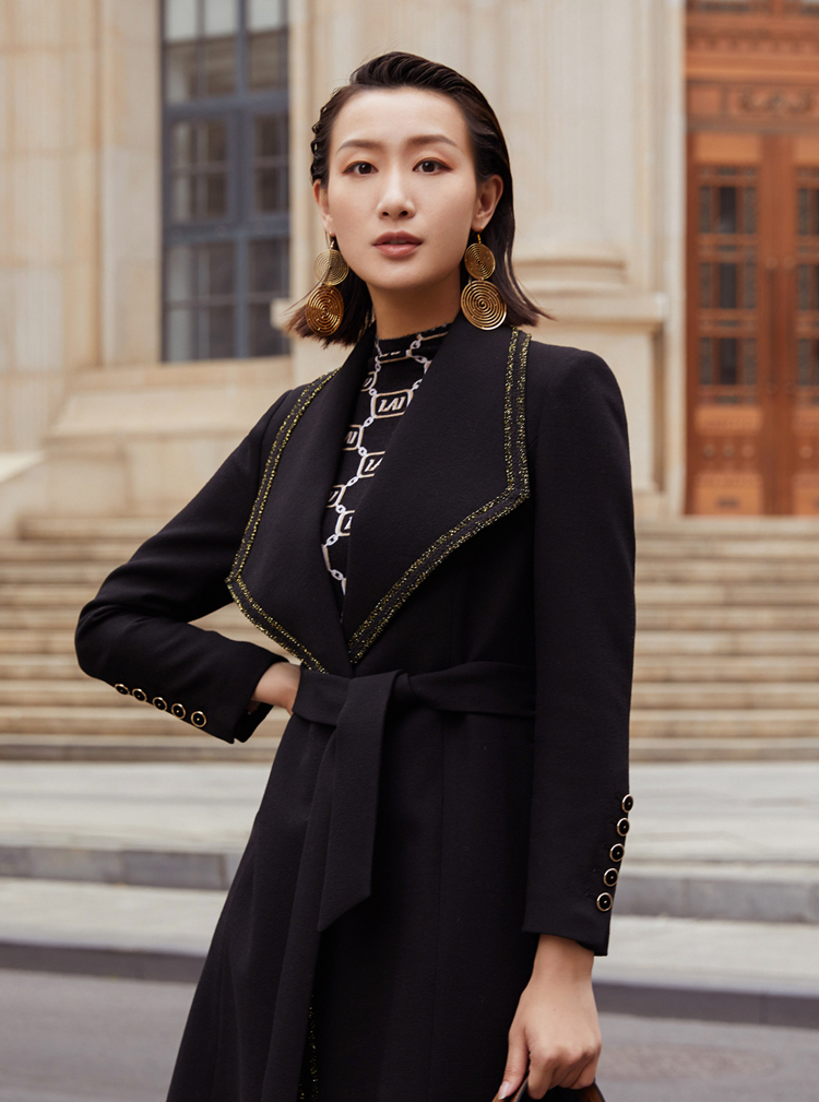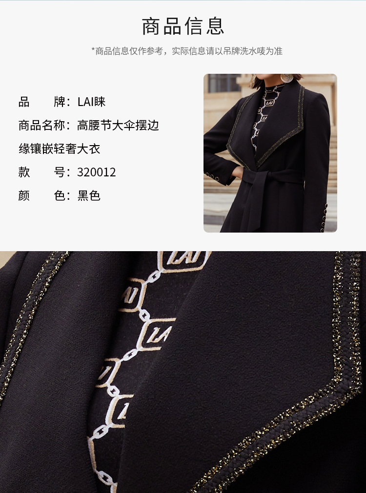 LAI睐高腰节大伞摆边缘镶嵌轻奢大衣320012