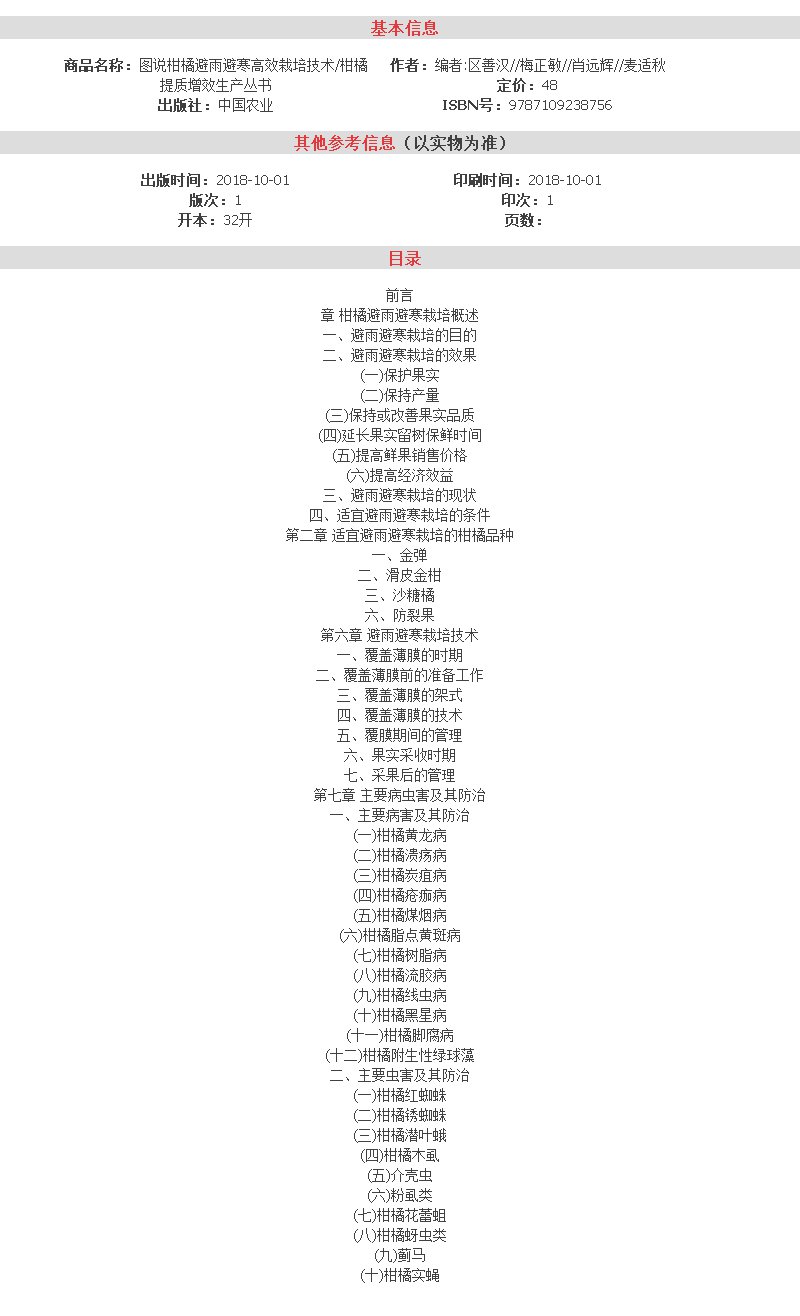 图说柑橘避雨避寒高效栽培技术【官方正版,可开发票,下单时留开票信息和电子邮箱】