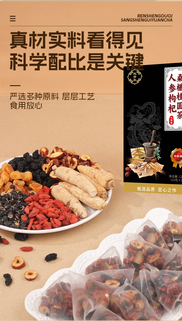 冬天养生茶办公司茶包人参枸杞桑葚桂圆茶五宝茶组合茶男人养生茶包