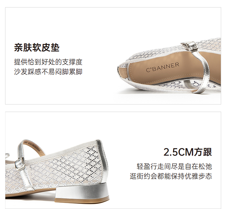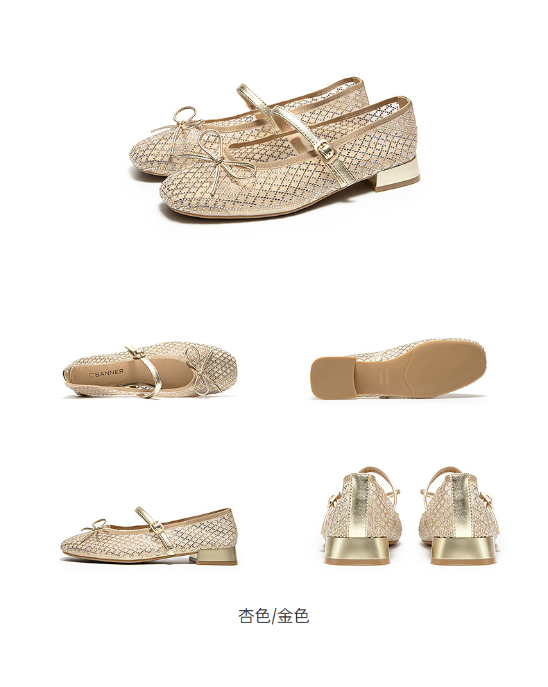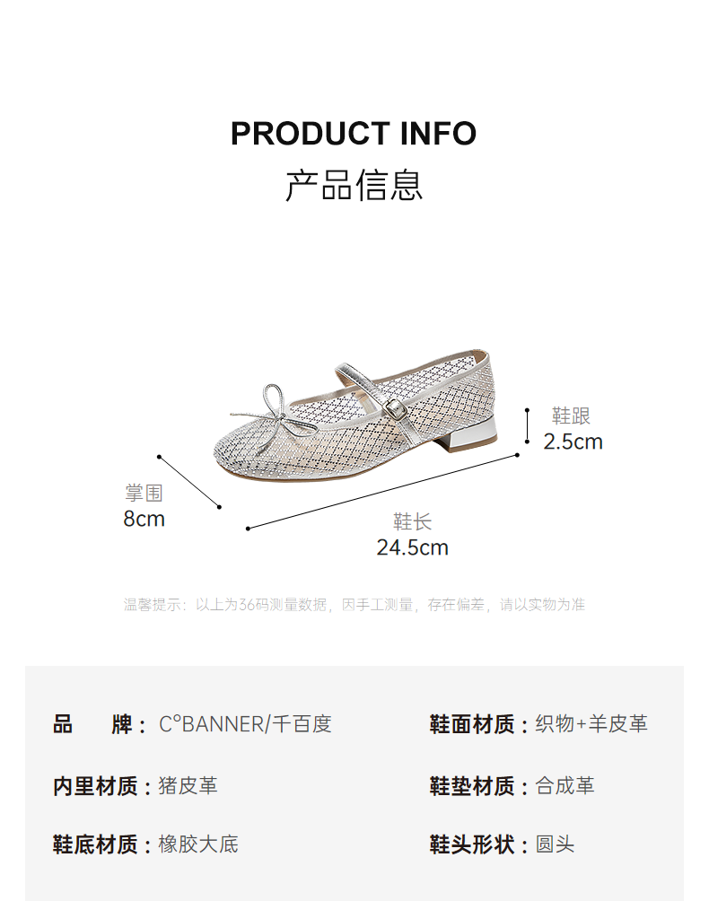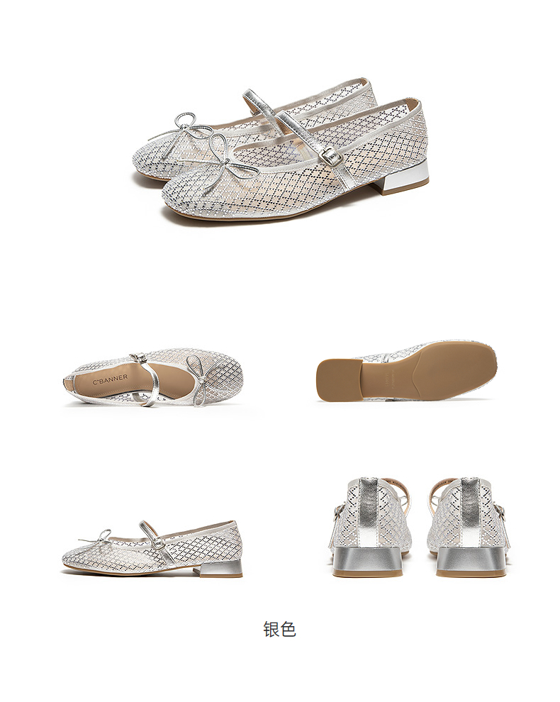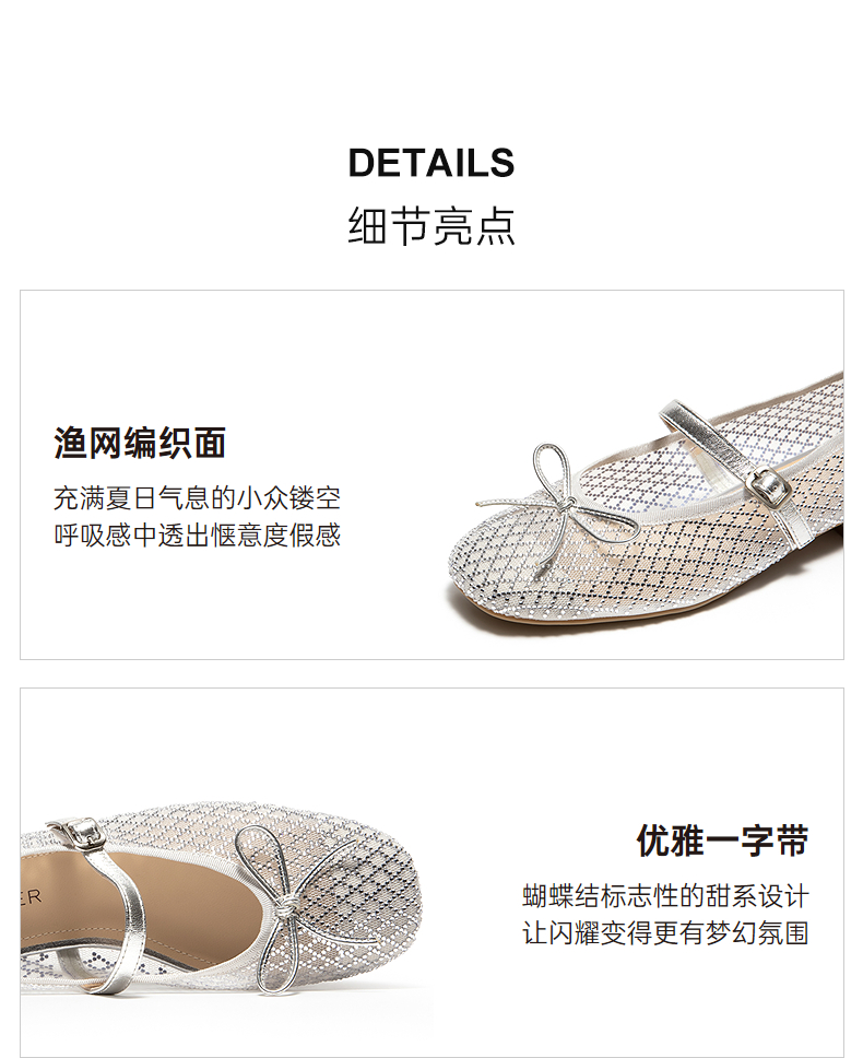 千百度渔网编织玛丽珍鞋女2026夏季新款透气蝴蝶结透气镂空凉鞋A26325201
