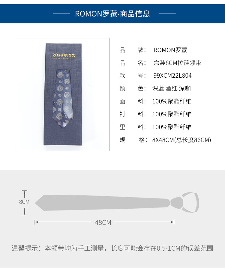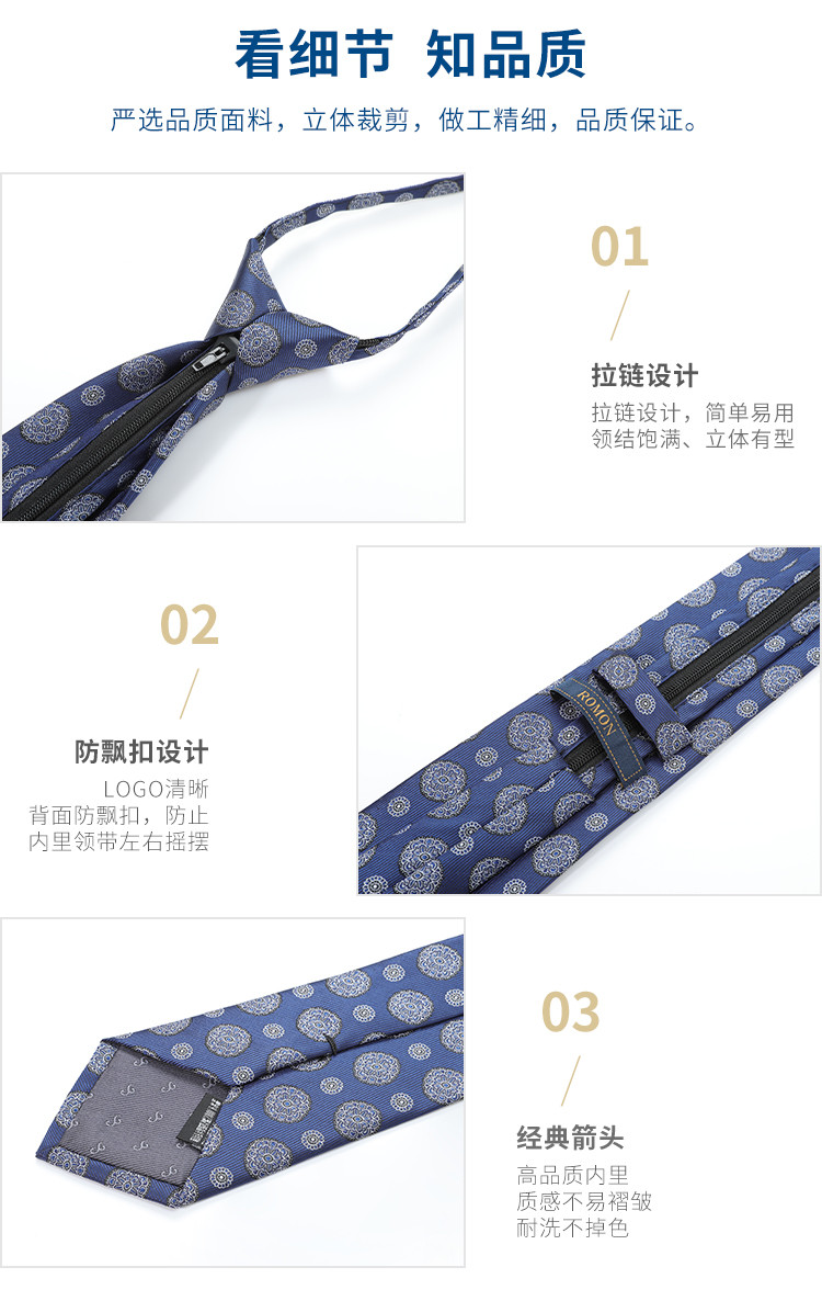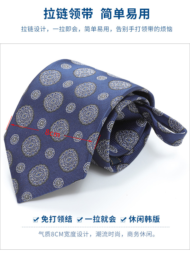 【礼盒款】罗蒙8厘米拉链领带简约花纹成熟稳重百搭舒适男士领带