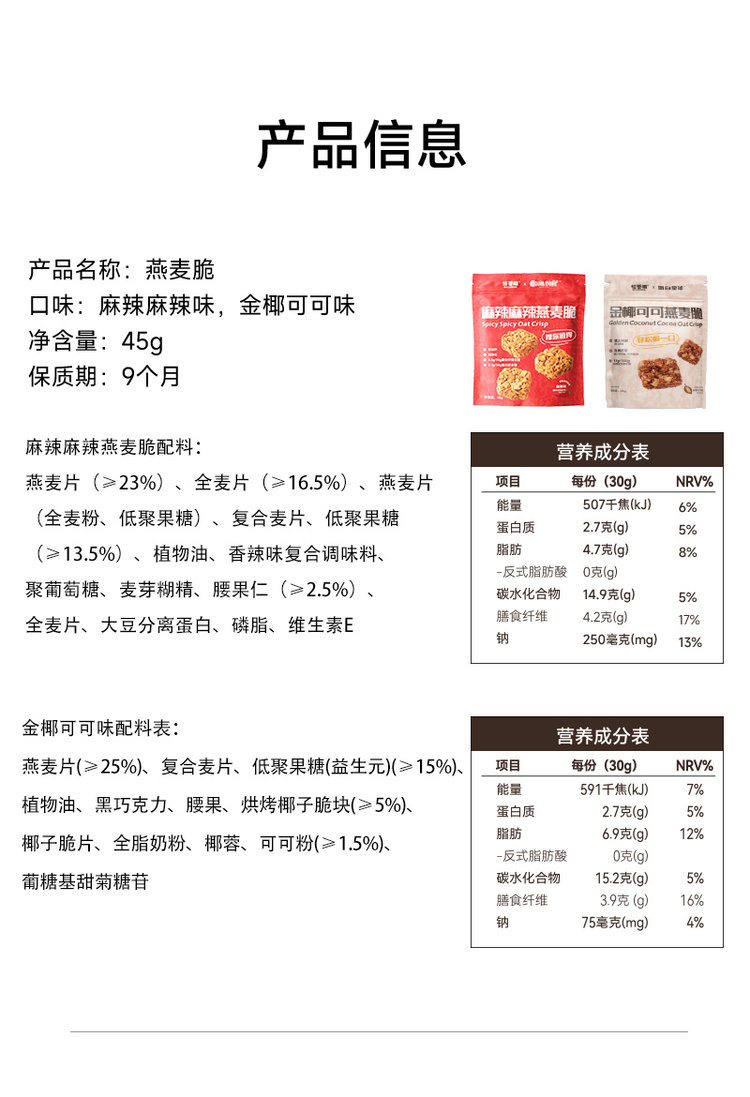 ✅使用非油炸工艺,加入进口燕麦、椰脆脆块和巧克力,富含膳食纤维🌈