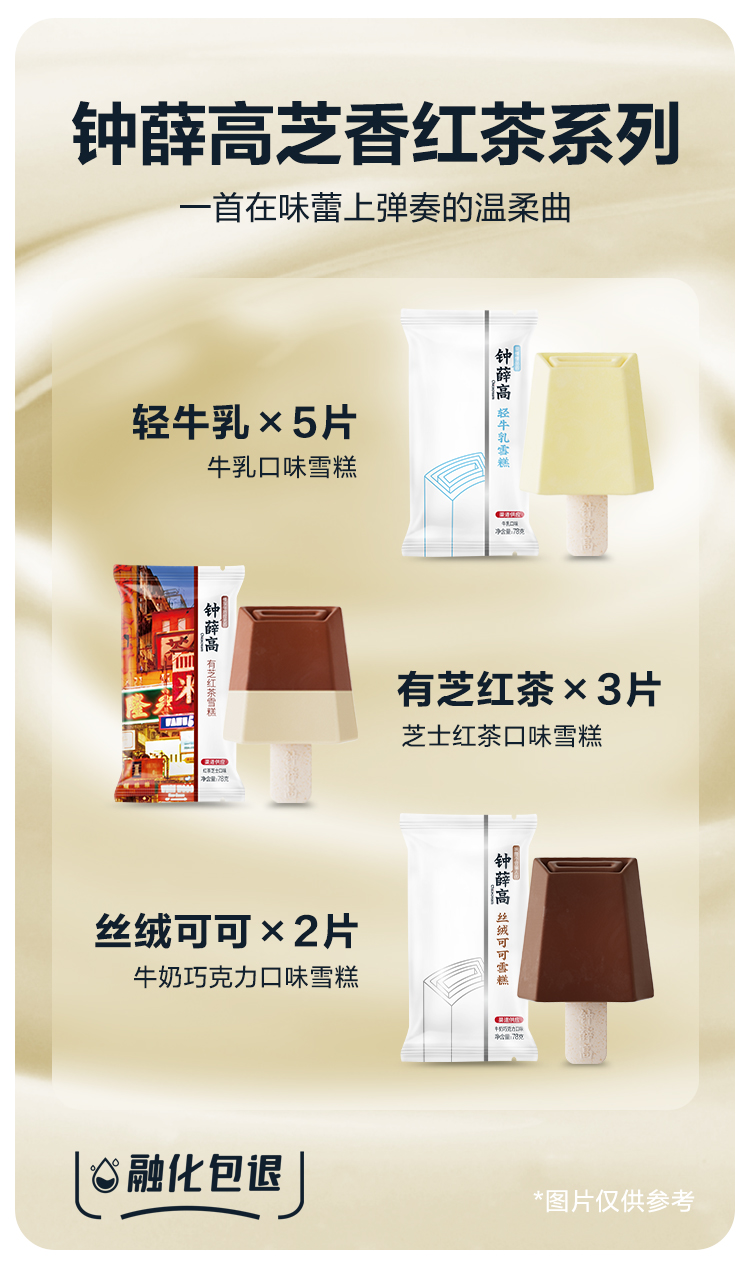 钟薛高 芝香红茶系列 轻牛乳*5 有芝红茶*3 丝绒可可*2 雪糕冰淇淋[福利品]