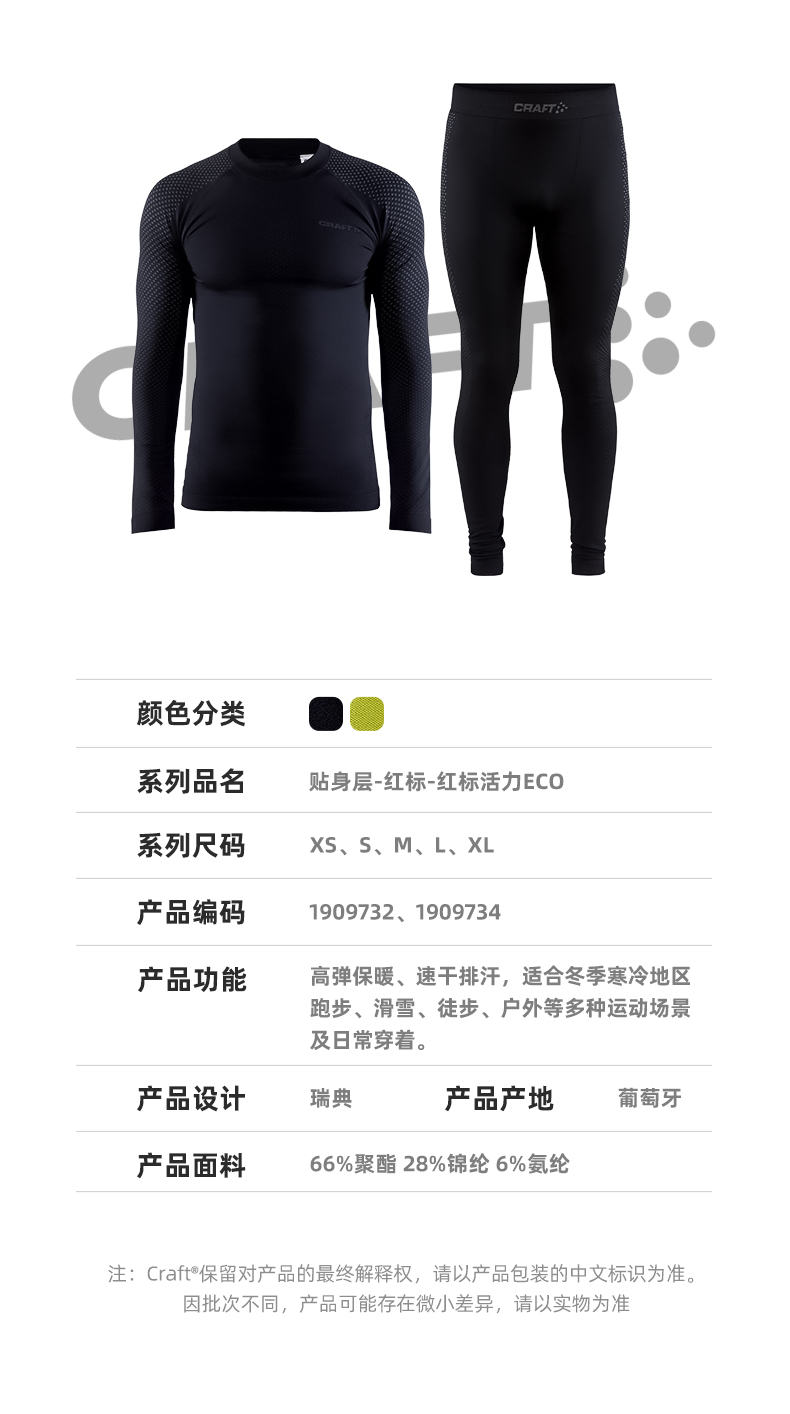 CRAFT 排汗功能速干衣 保暖内衣 红标活力ECO