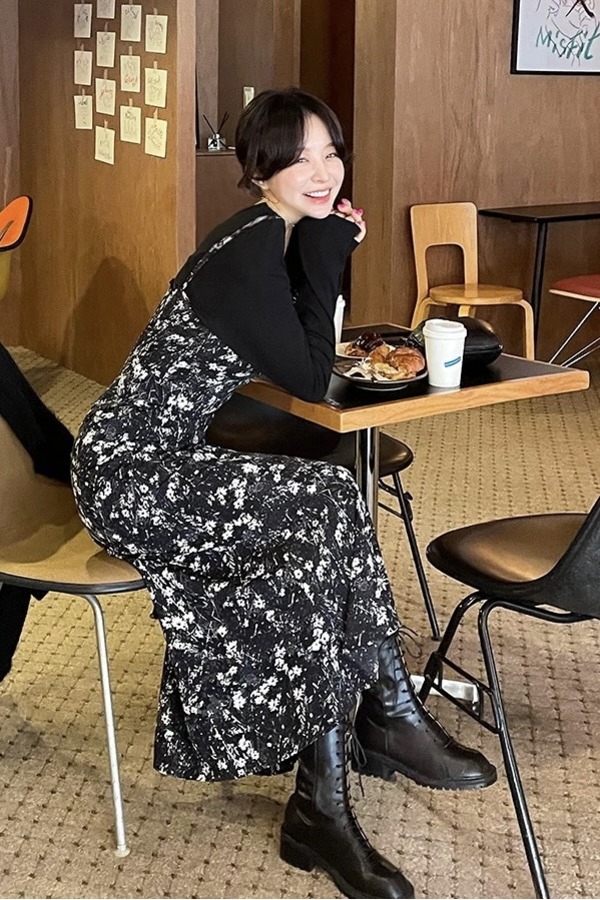 WEN&VI 印花长吊带直筒连衣裙 2376