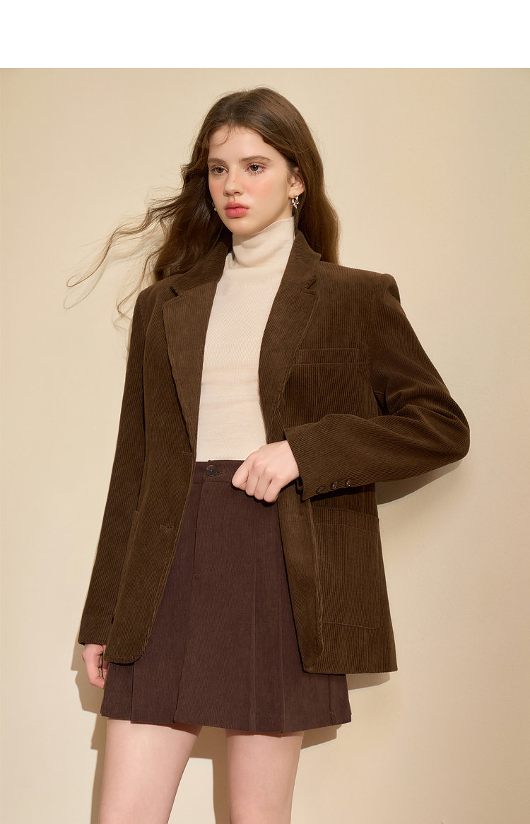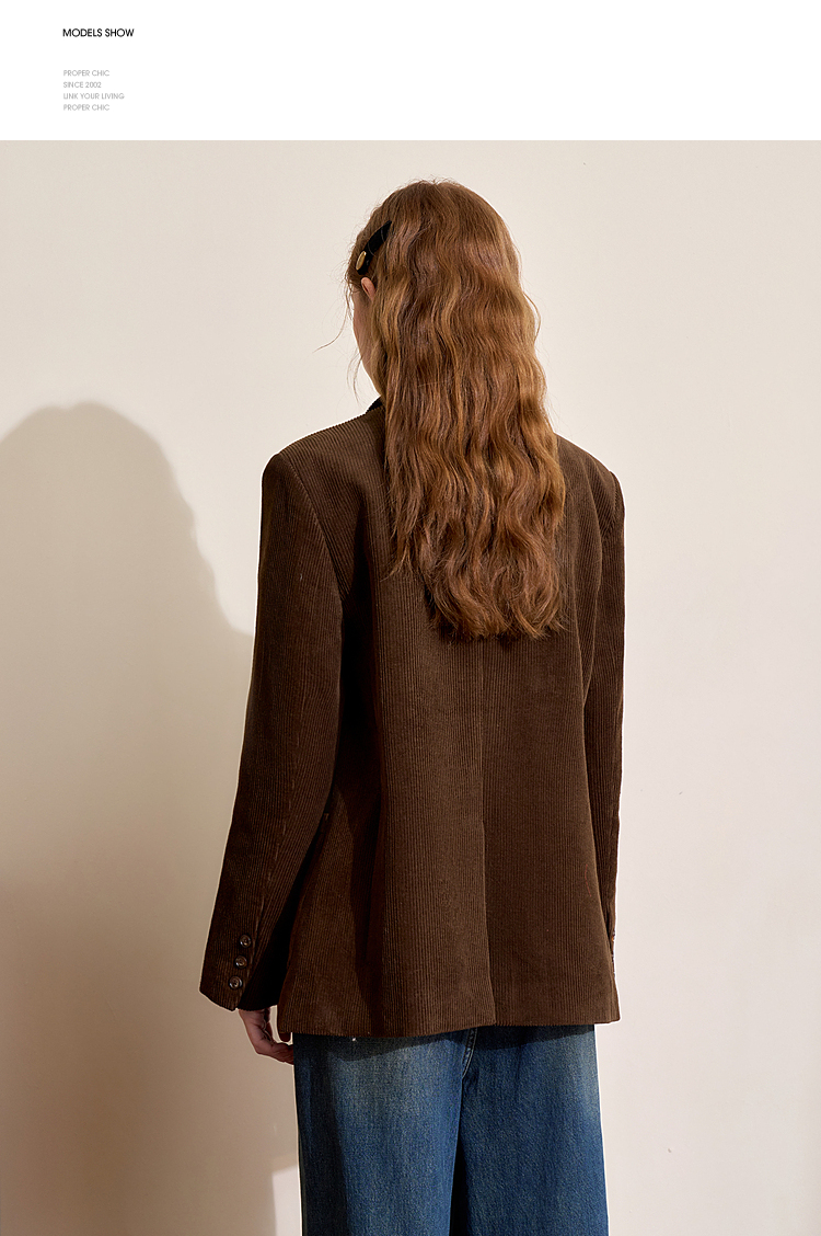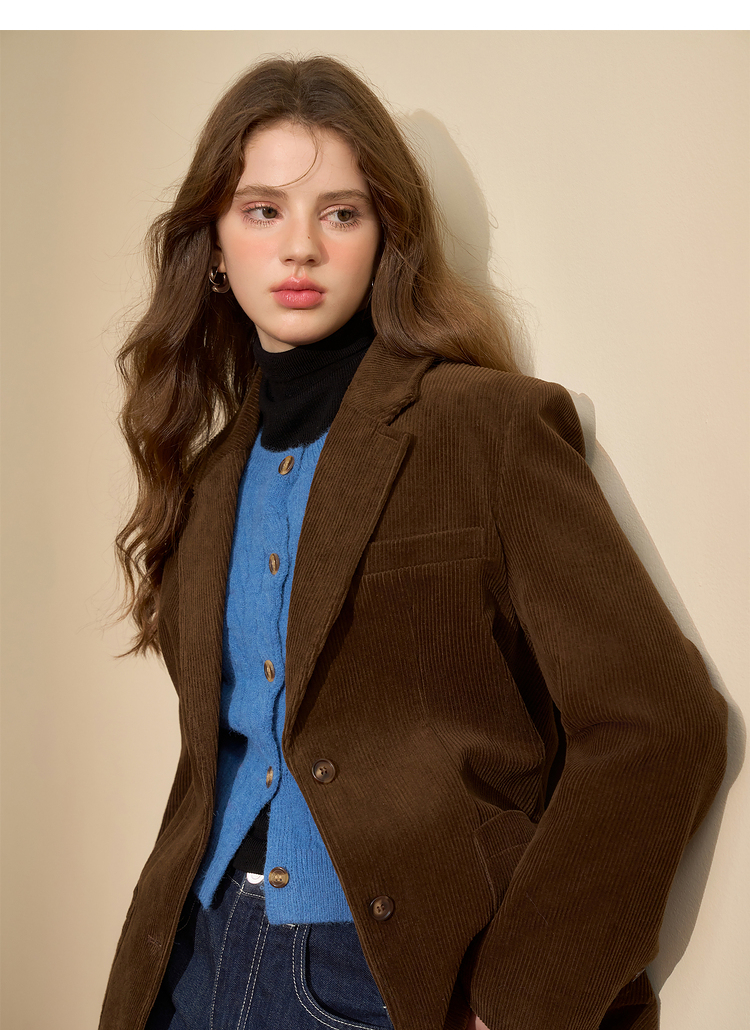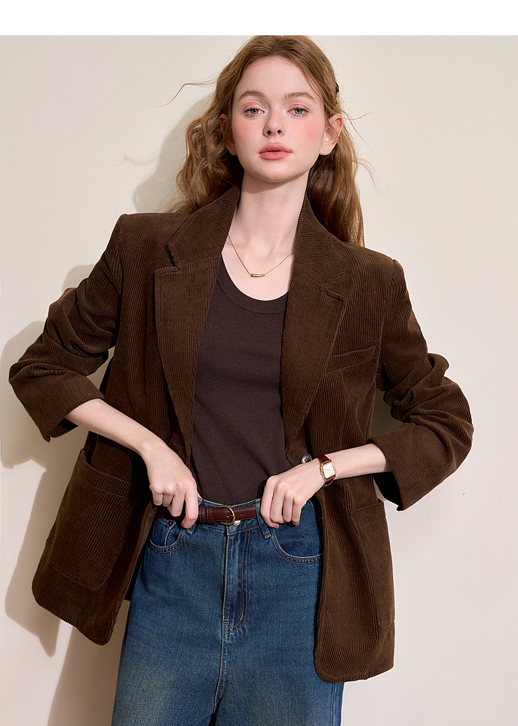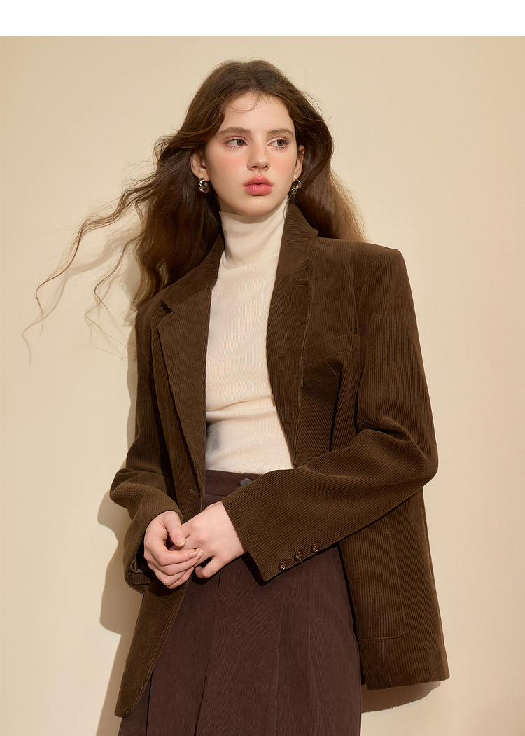 美拉德复古灯芯绒简约气质西装外套女休闲西服V0043990
