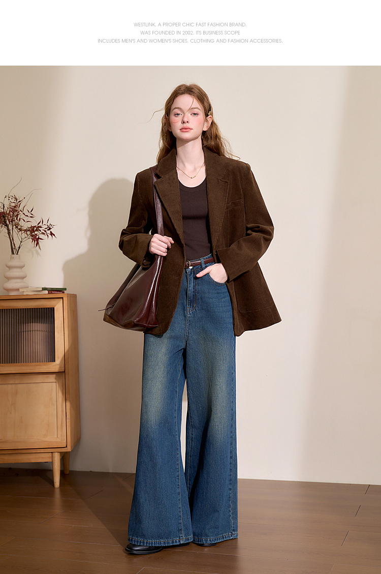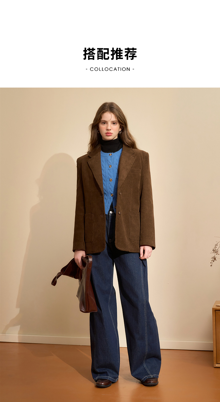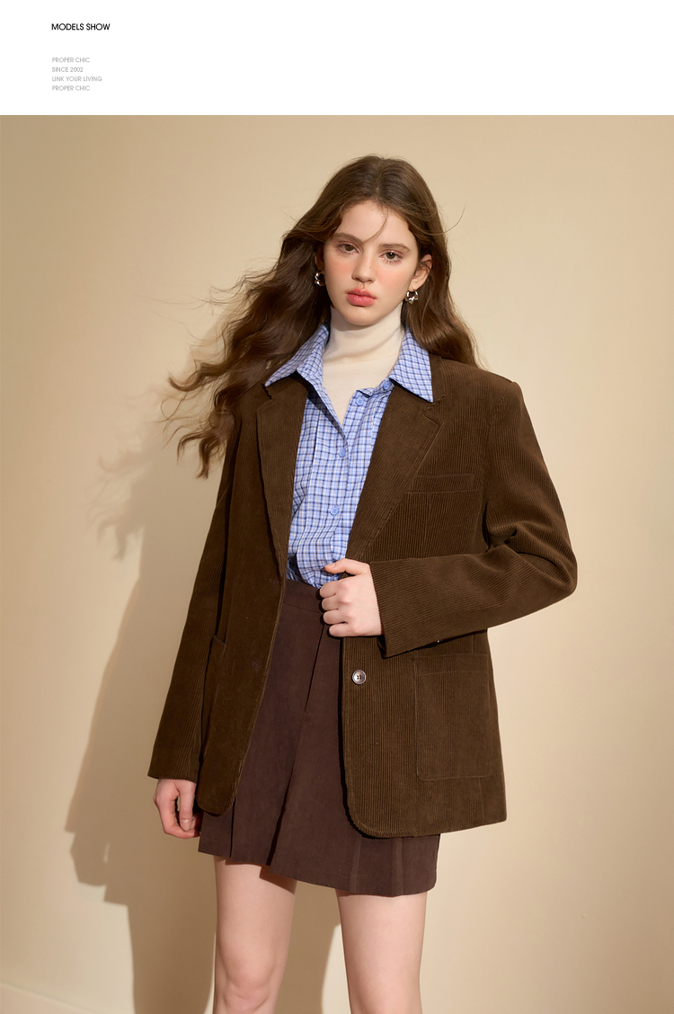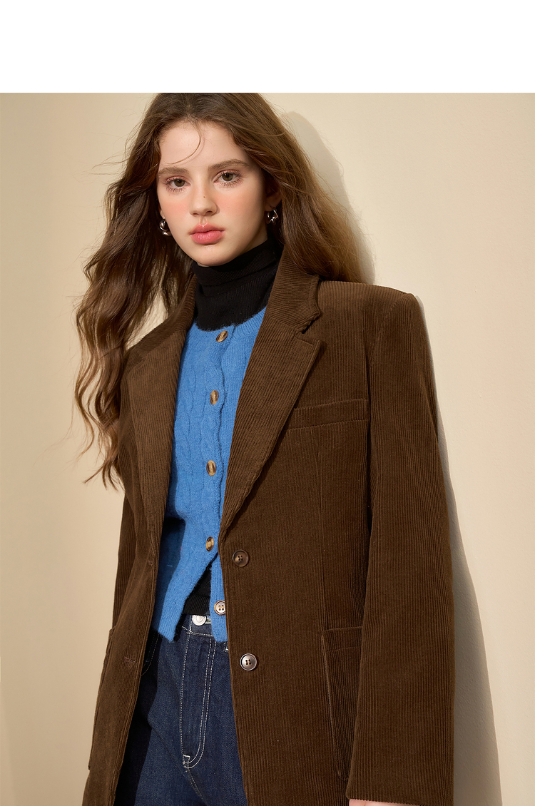 美拉德复古灯芯绒简约气质西装外套女休闲西服V0043990