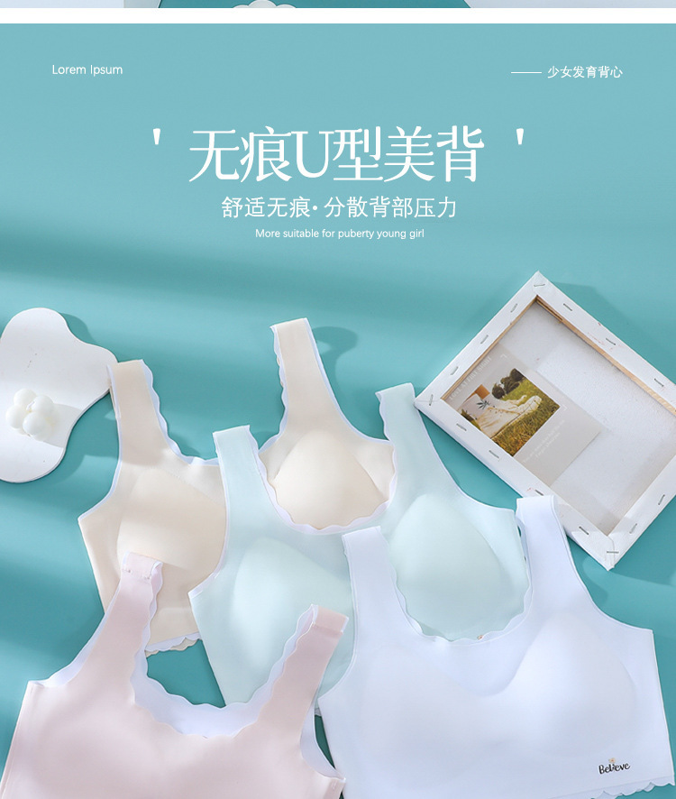 【少女必备!第二件0元】初高中学生内衣,安全无忧;背心样式,宽肩舒适。拆卸杯垫随心换,3D连体插片不闷汗。少女乃至大童都不用愁,健康柔软伴你成长,不露痕迹,防凸点,青春无忧!
