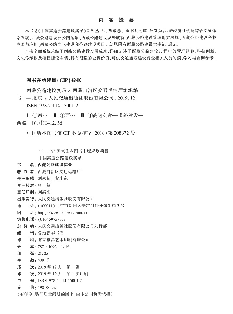 书名:西藏公路建设实录