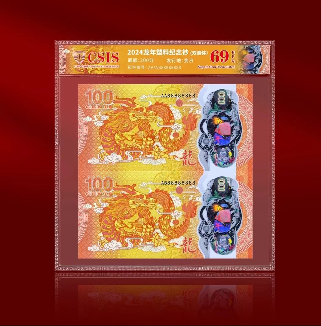 2024斐济龙年100分塑料钞(88888)开头吉祥号 单张/双连体/八连体/十六连体