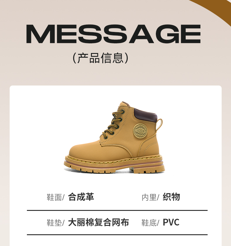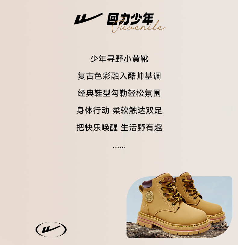 回力儿童马丁靴早春新款宝宝短靴春季草原户外男童靴子女童大黄靴WBN(JS)-1891
