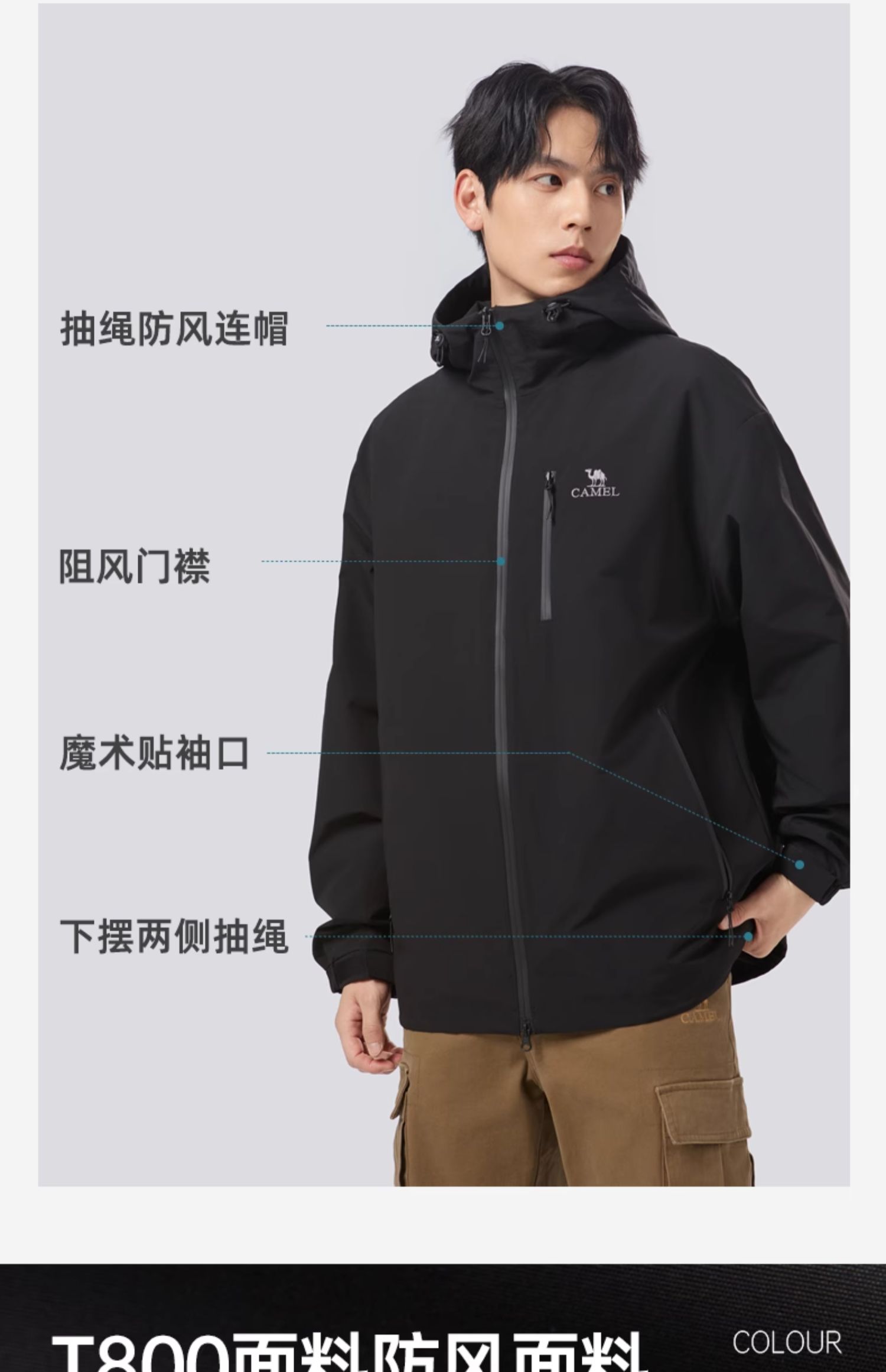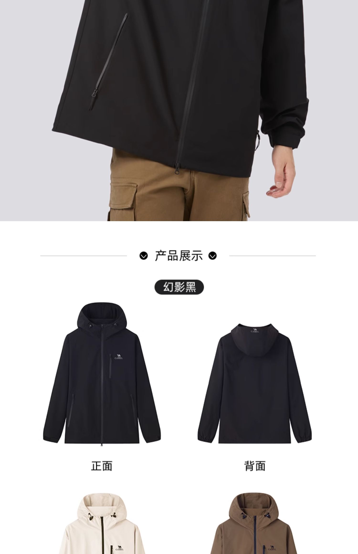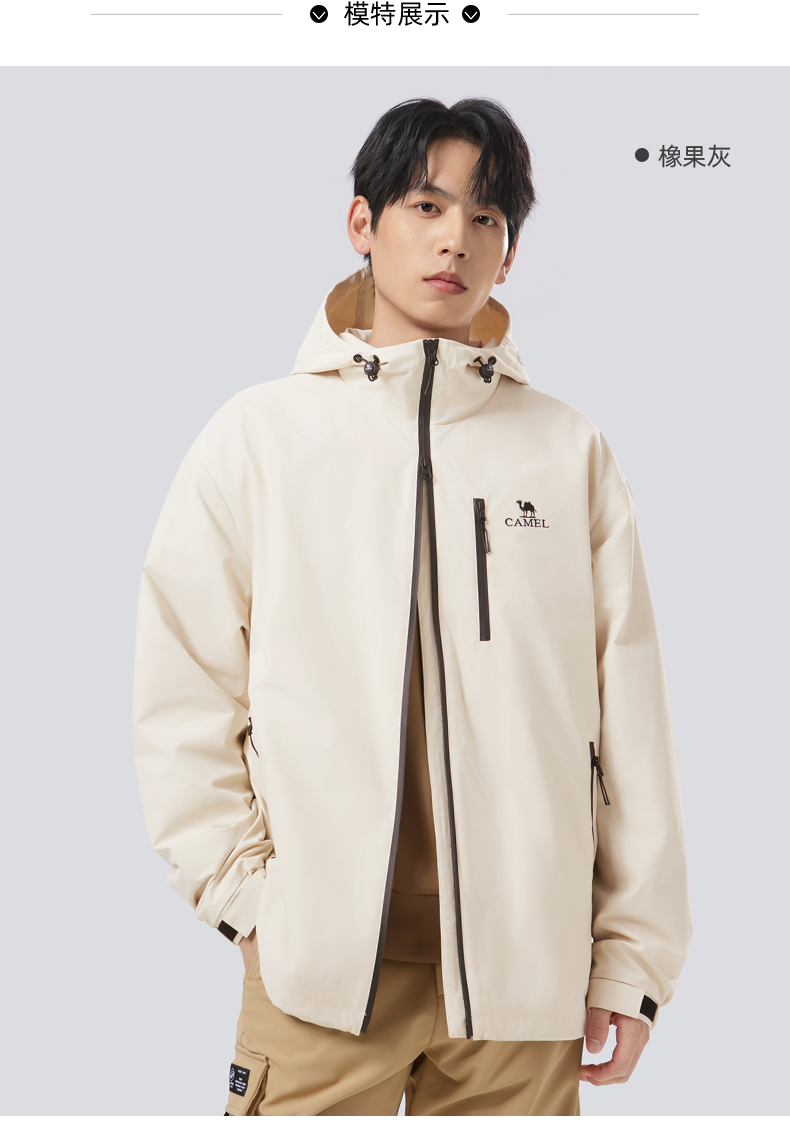 骆驼运动外套男2025春秋新款防风防泼水连帽夹克户外防风外套女 J34CABH632_J24CZ07629_J14CZ07630_C24CABH625
