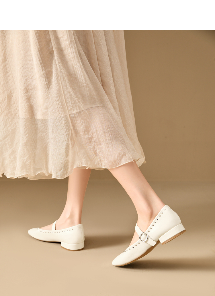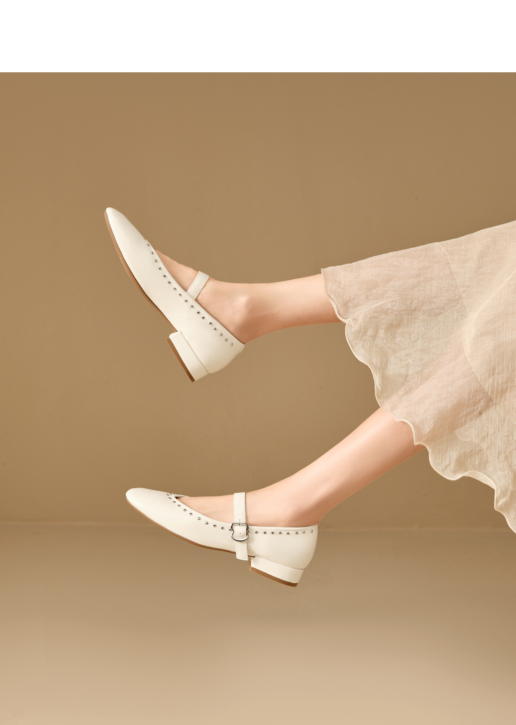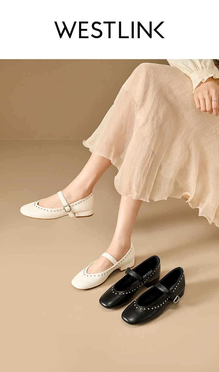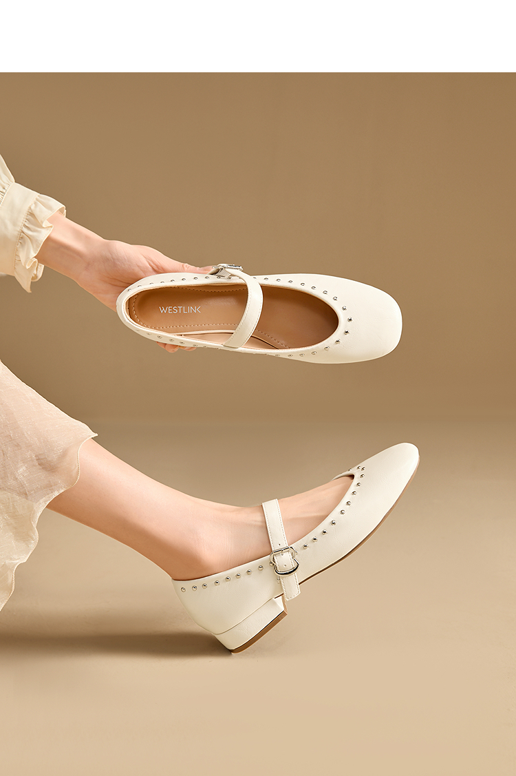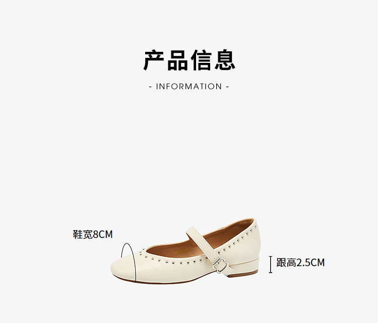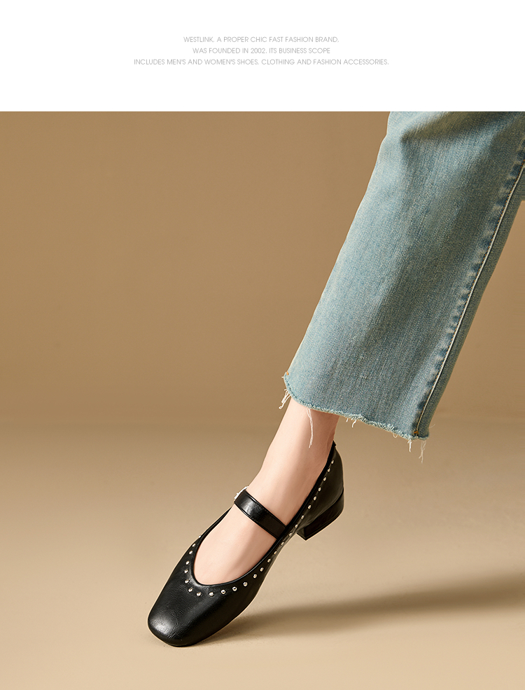 西遇复古玛丽珍女鞋新款法式铆钉圆头小皮鞋软底低跟单鞋V0256264