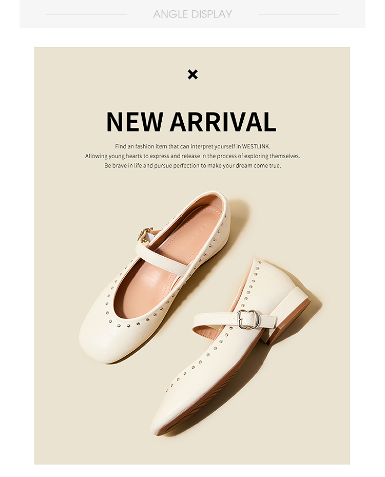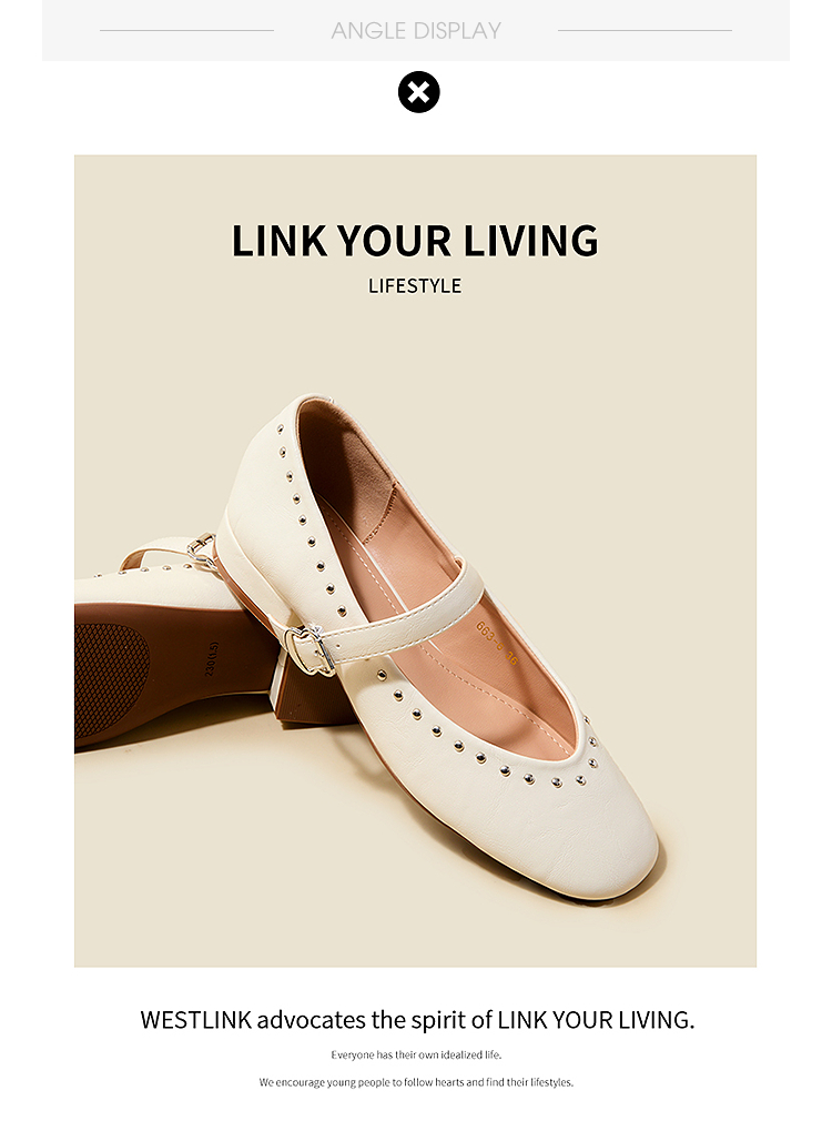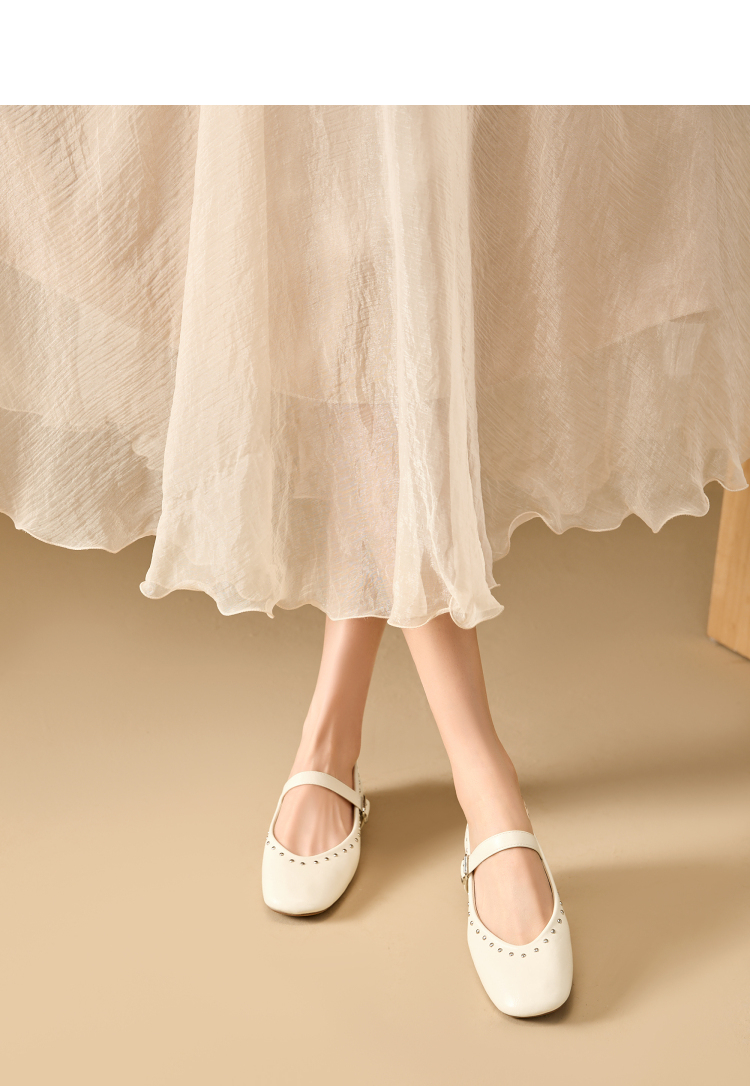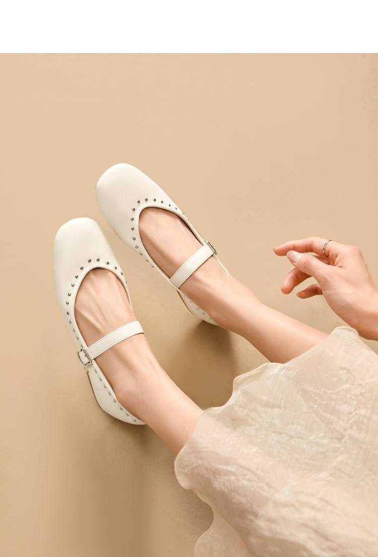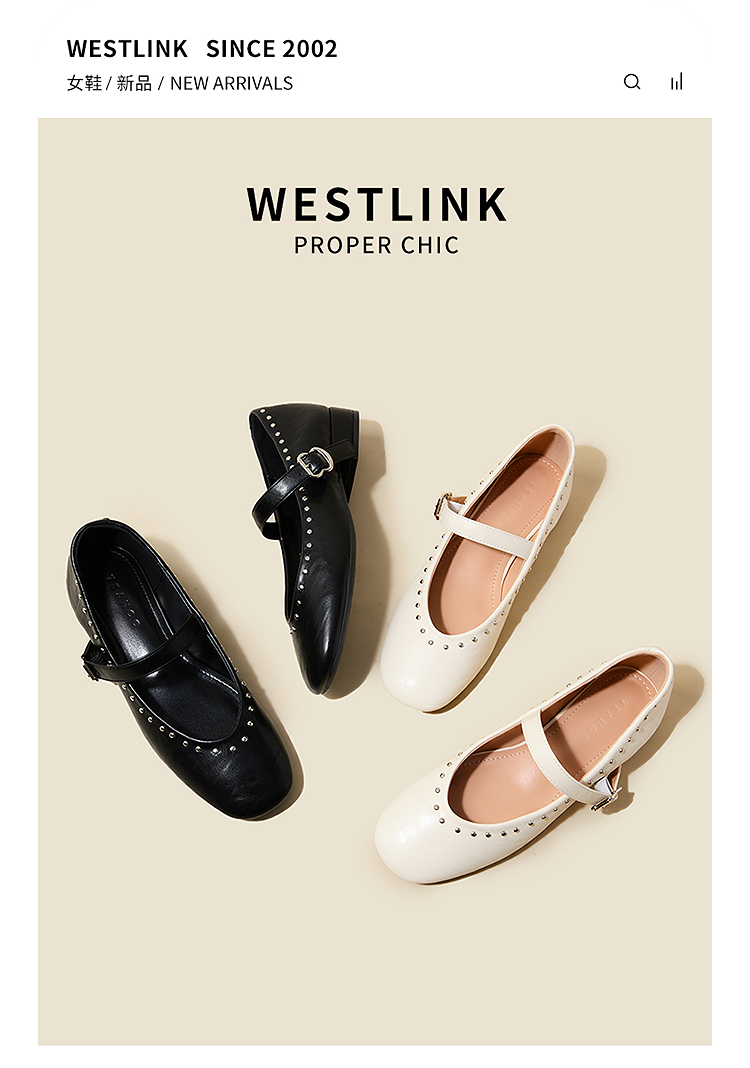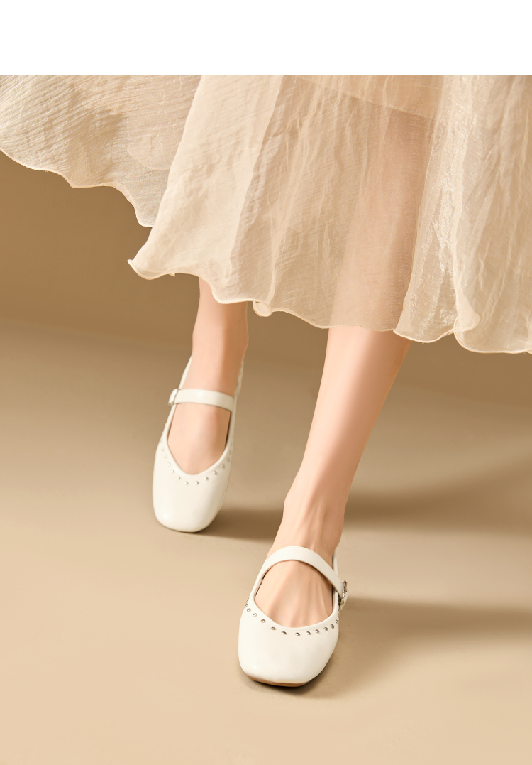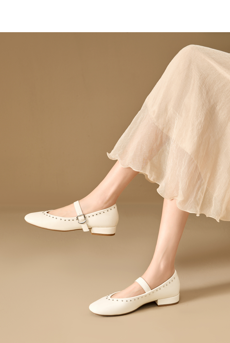 西遇复古玛丽珍女鞋新款法式铆钉圆头小皮鞋软底低跟单鞋V0256264