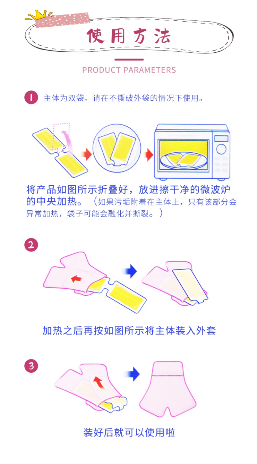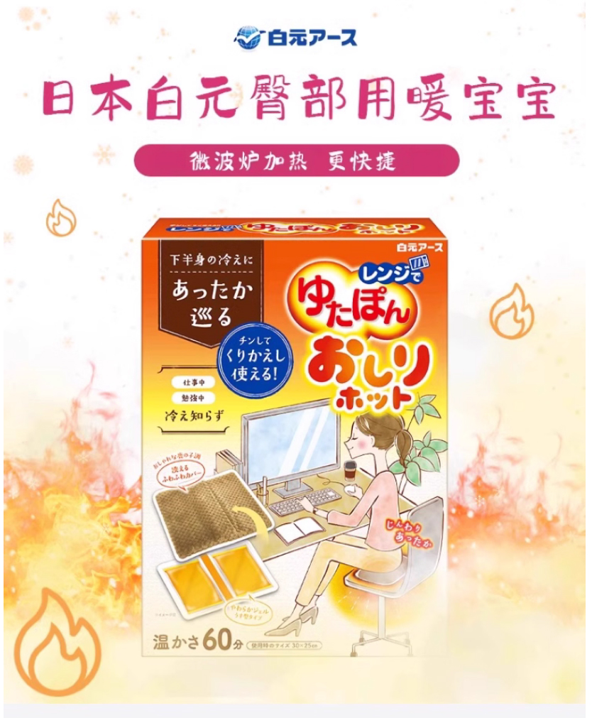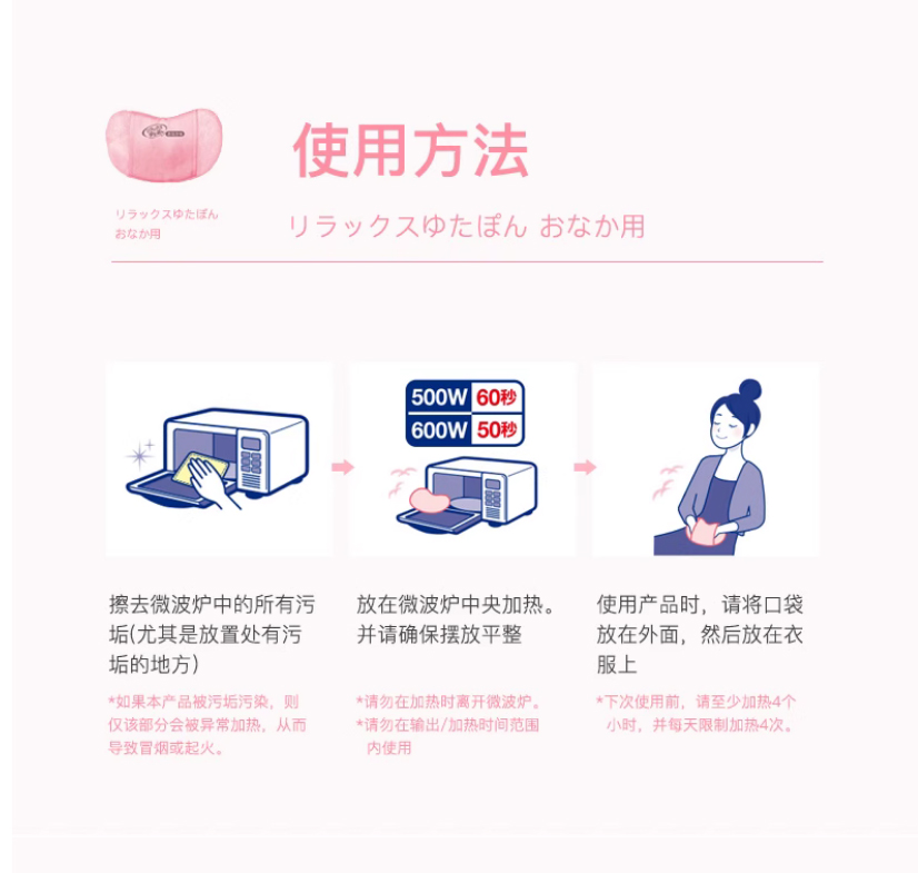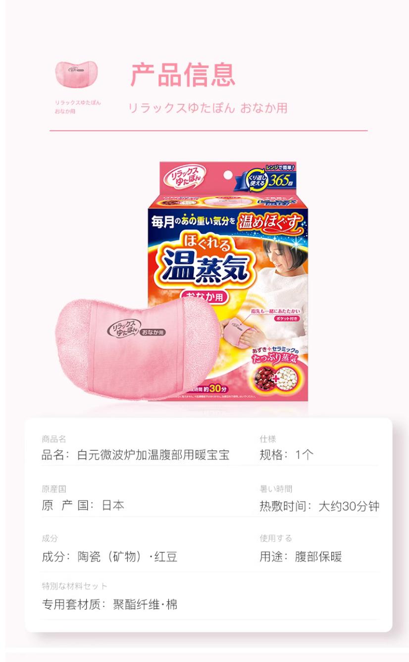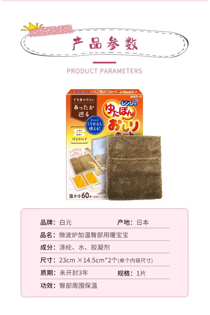 【品名】日本白元微波炉加热暖宝宝1条装/盒 腹部/枕头/坐垫