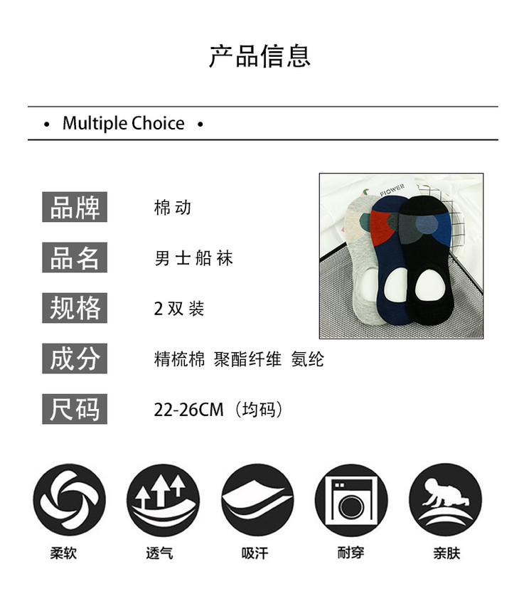 【49元6双】男丨男士船袜防脱跟男袜薄款地板袜短袜【911302】