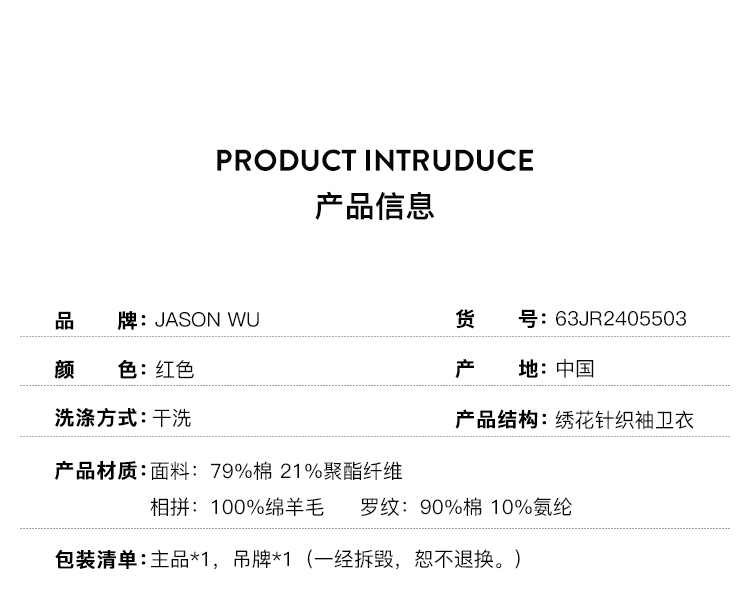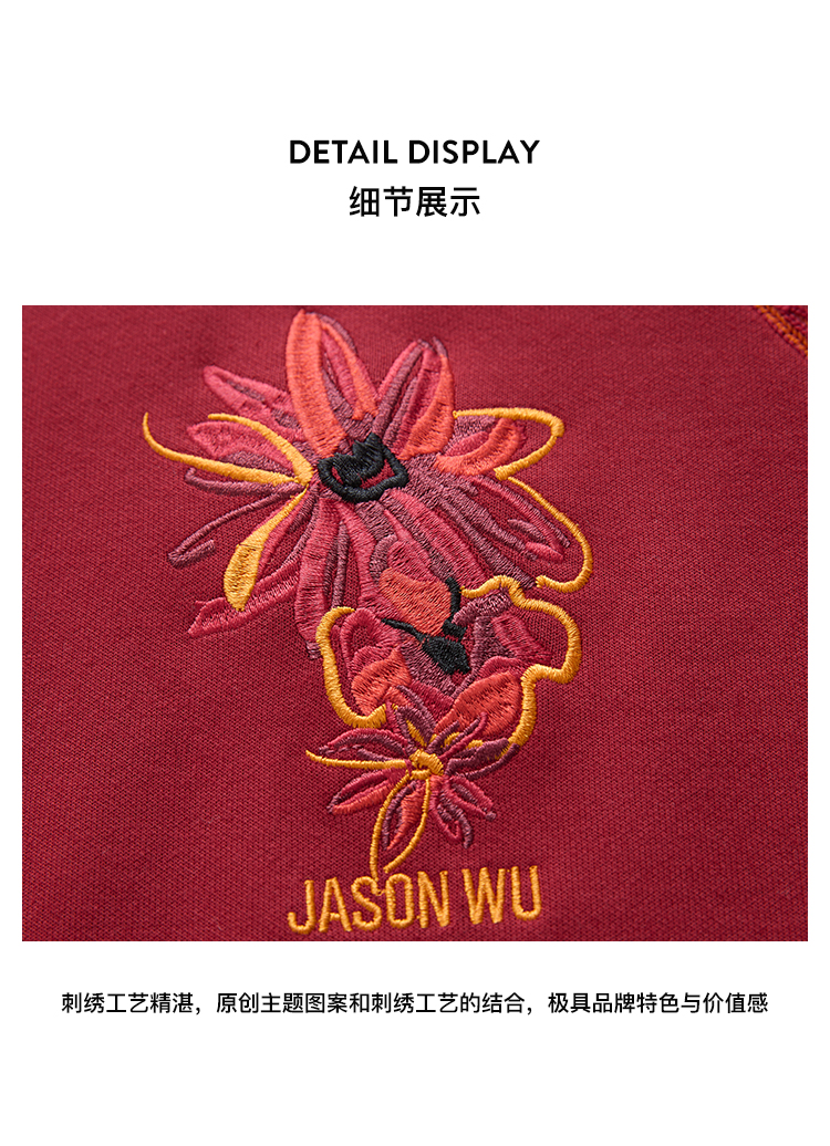 【JASON WU】秋季新款新中式刺绣花卉宽松通勤羊毛上衣卫衣女