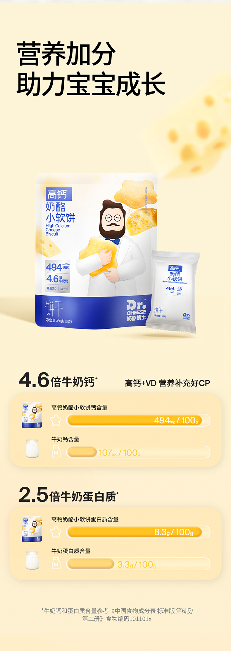 【VIP频道】高钙奶酪小软饼60g(10小袋)/袋*6袋(拒绝添加香精色素防腐剂食用盐)