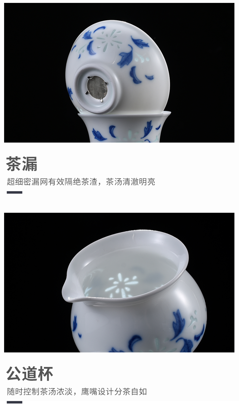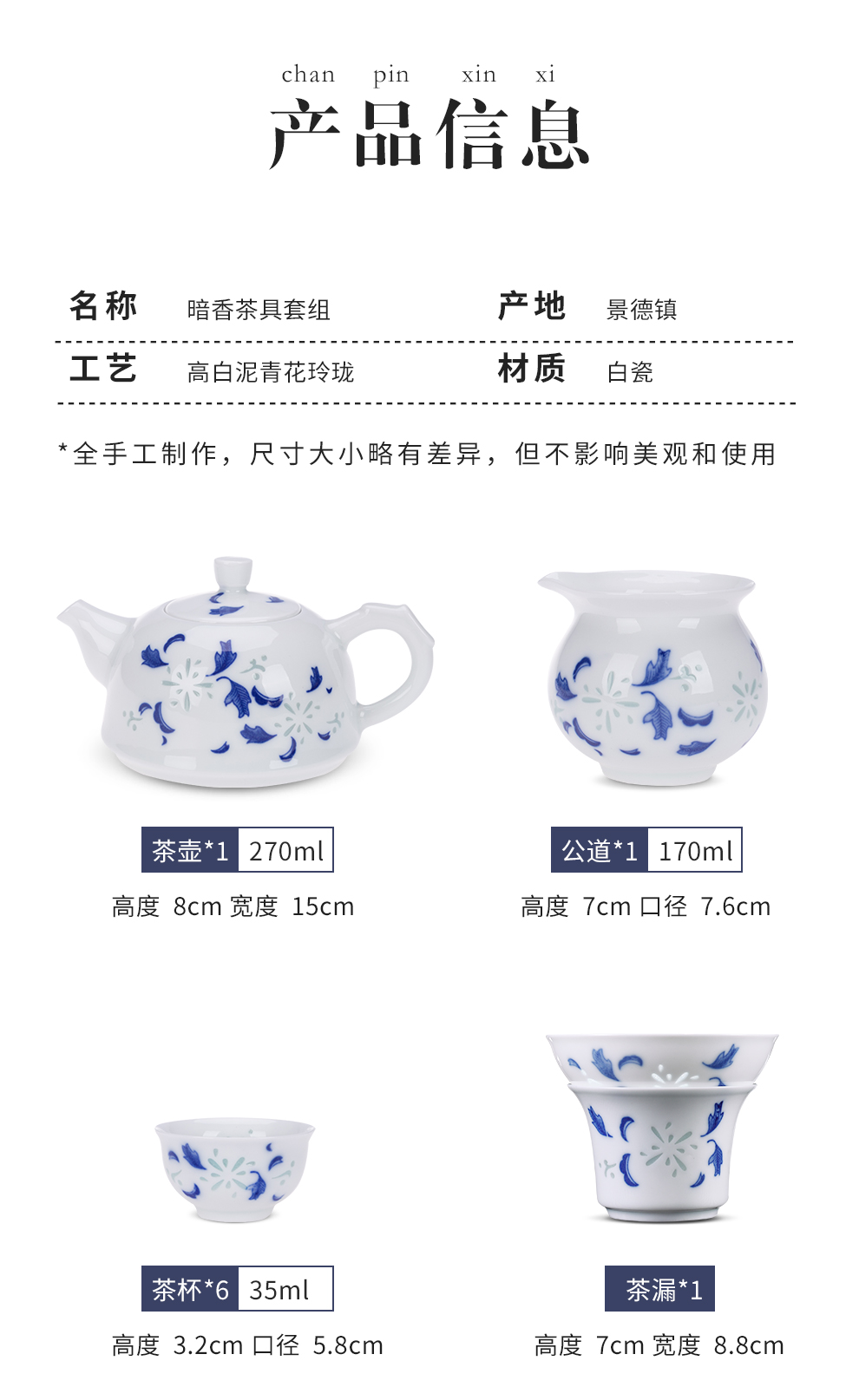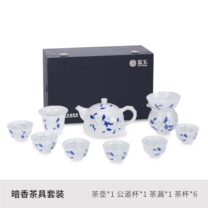 富玉陶瓷 暗香礼盒 景德镇 创意青花玲珑陶瓷 功夫茶具套装组合【天猫同款】