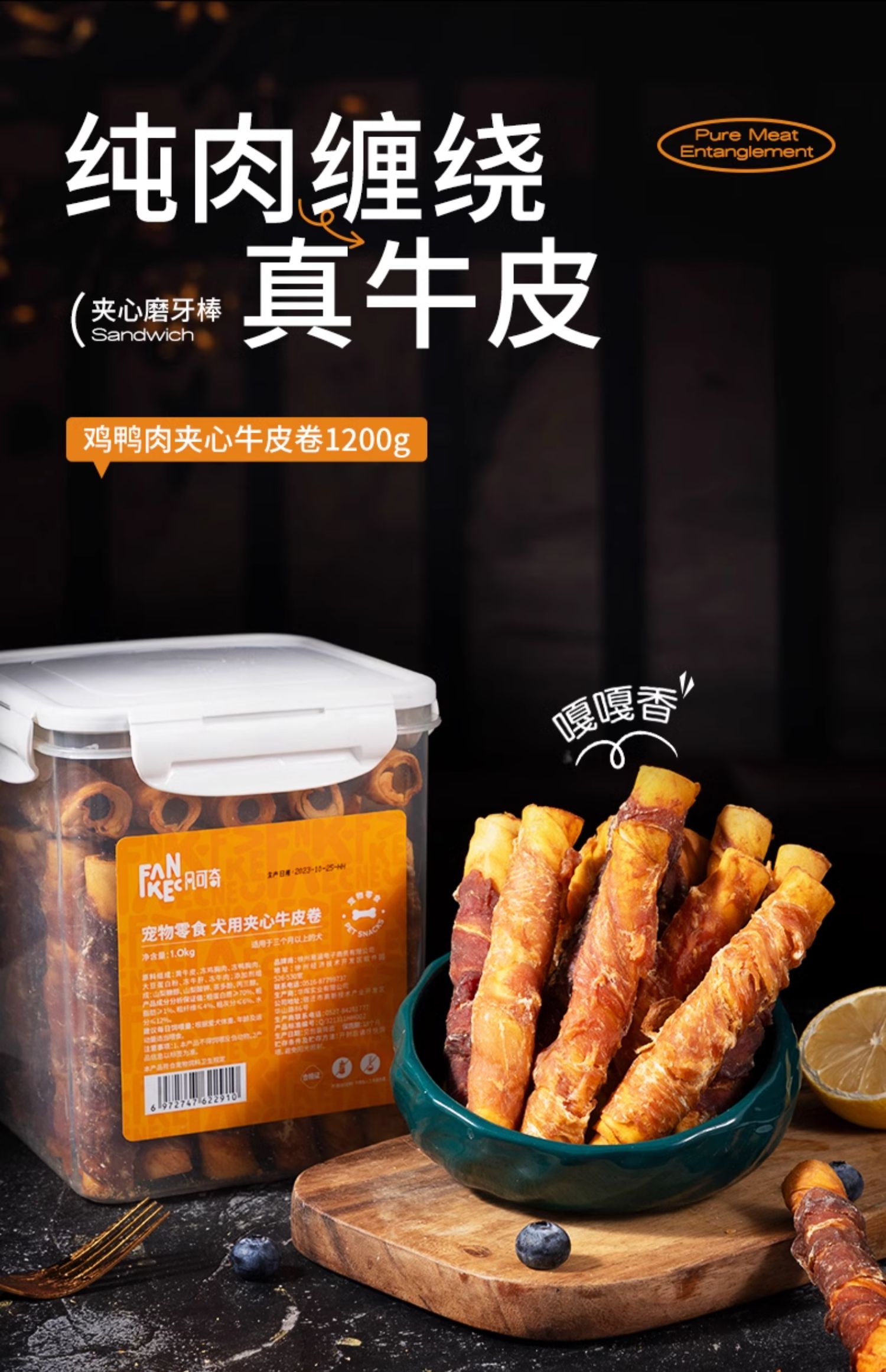 凡可奇 鸡鸭肉夹心牛皮卷 200g 狗狗磨牙零食