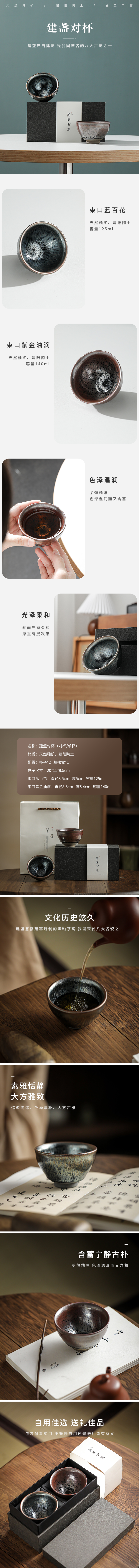 兰台首选 建盏对杯束口紫金油滴/束口蓝百花天然原矿铁胎茶具陶瓷主人杯
