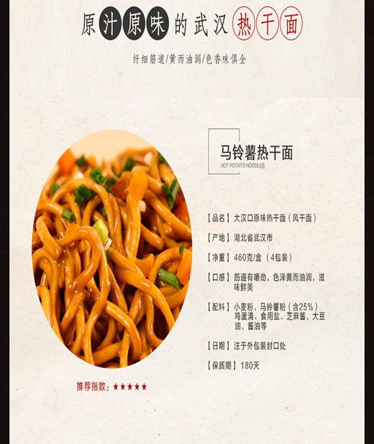 - 大汉口热干面是武汉城市名片之一,热干面代表企业。卖向全世界多个国家的武汉热干面,全球畅销15年, 全国各麦德龙、山姆、Today超市等大中型商超均有销售。
