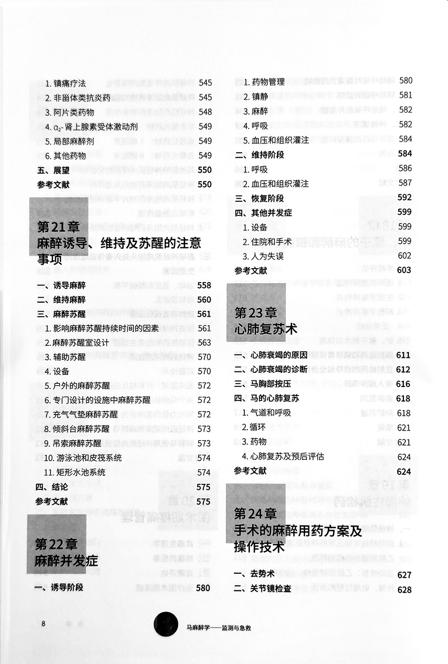《马麻醉学》是由俄亥俄州立大学兽医学院麻醉学教授约翰-哈贝尔和俄亥俄州兽医临床药理学咨询部区域总监威廉.W.穆尔博士两位著名学者共同撰写的一部经典著作。其中囊括了马属动物麻醉监测和急救方面的基础知识和治疗方法,对于操作的描述十分详细,而且紧跟国际最先进的技术和知识,是不可多得的一部好书。可以填补马兽医领域图书的空白,对于马兽医教育和从业均具有里程碑式的启蒙和推动作用。