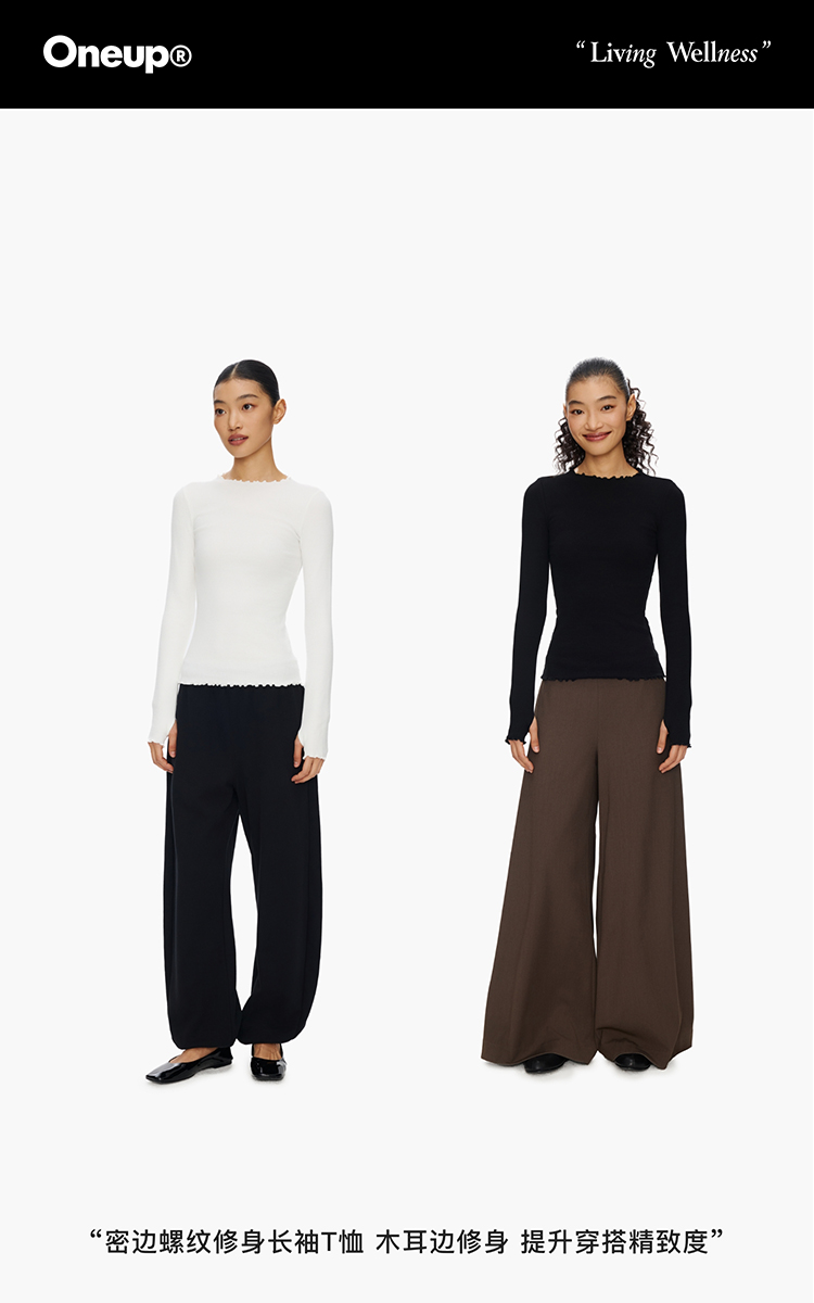 Oneup密边螺纹修身长袖T恤