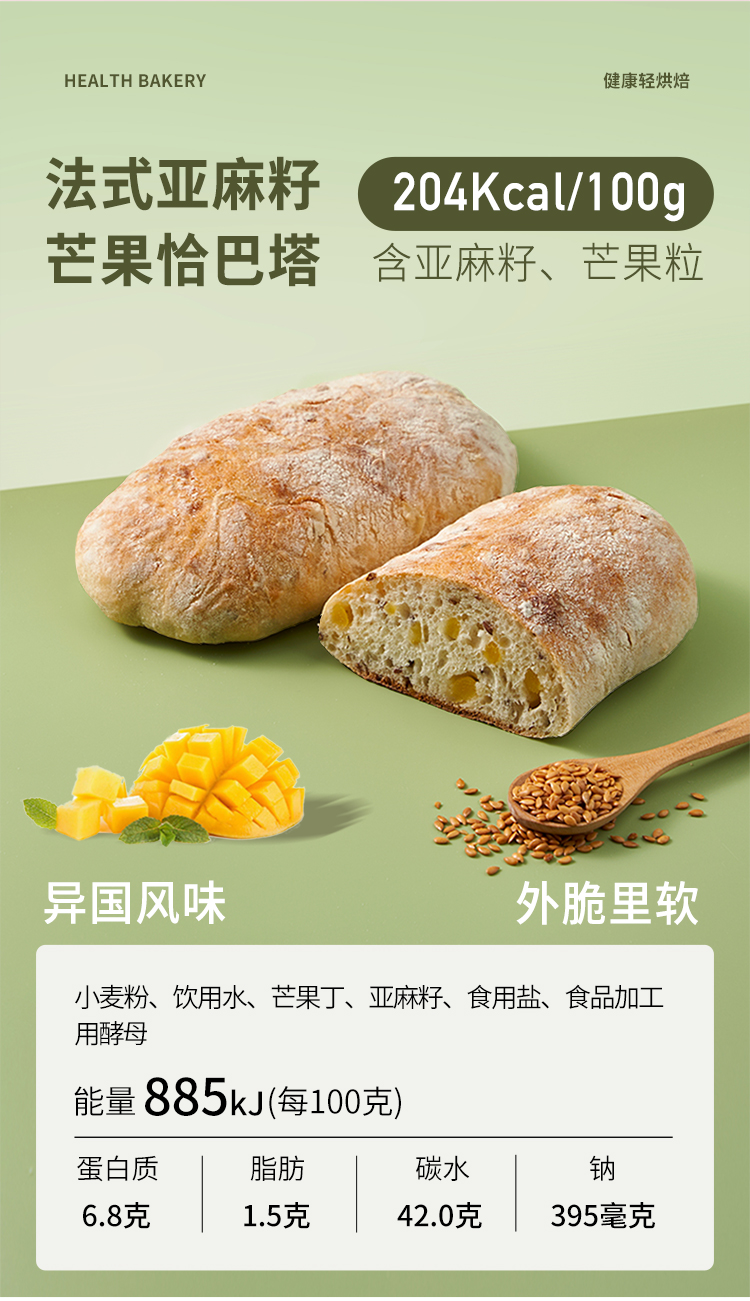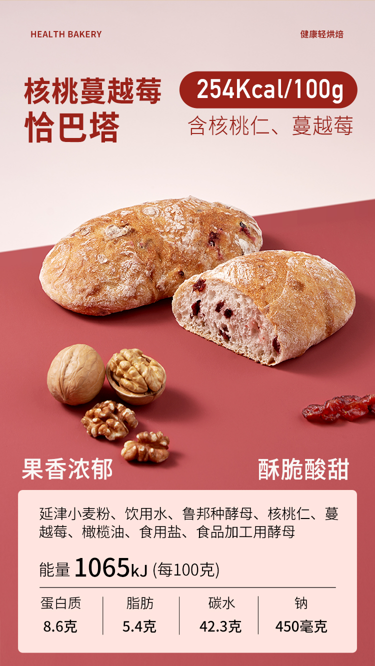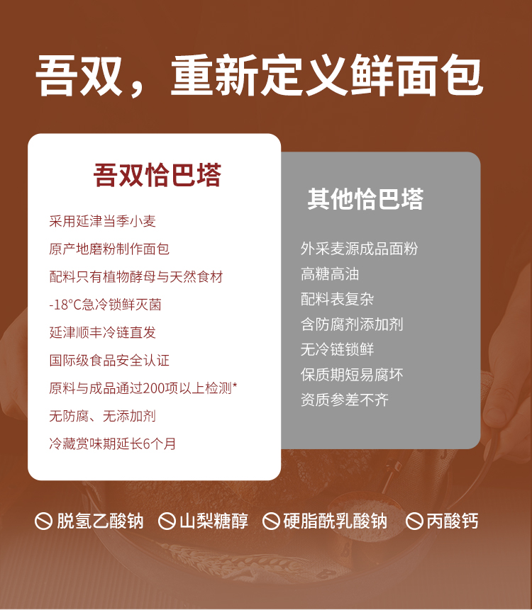 吾双 8口味恰巴塔面包(番茄罗勒/黑松露菌菇/蕉心巧克力/全麦/核桃蔓越莓/奇亚籽芒果/开心果红豆/提子橙丁)单包4个装